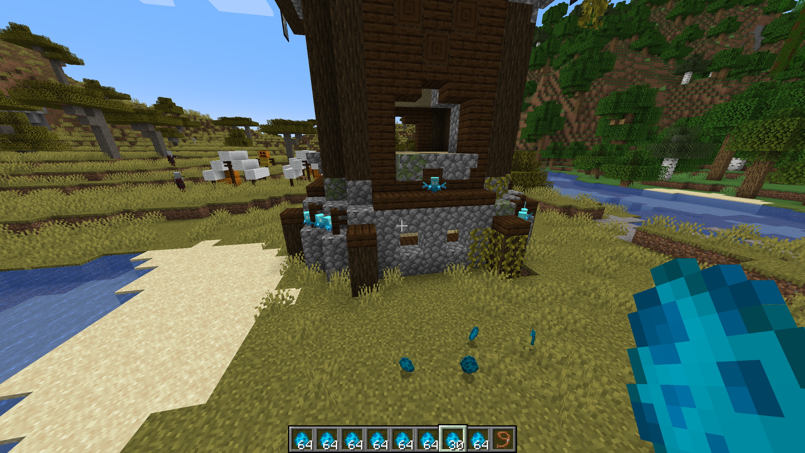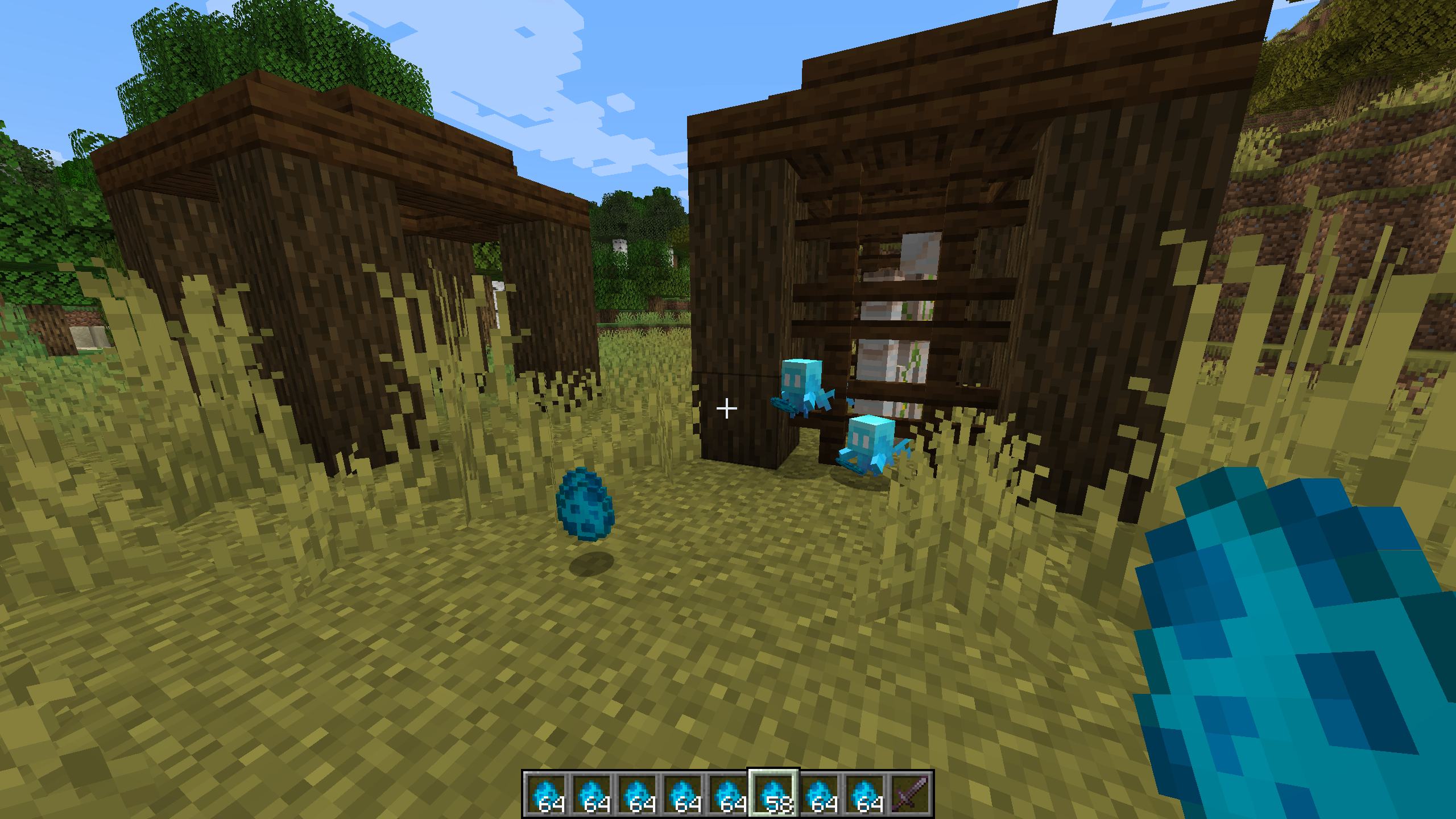 /fill ~20 ~-20 ~20 ~ ~ ~ minecraft:acacia_fence hollowSummon allays inside and outside the fence cube.
