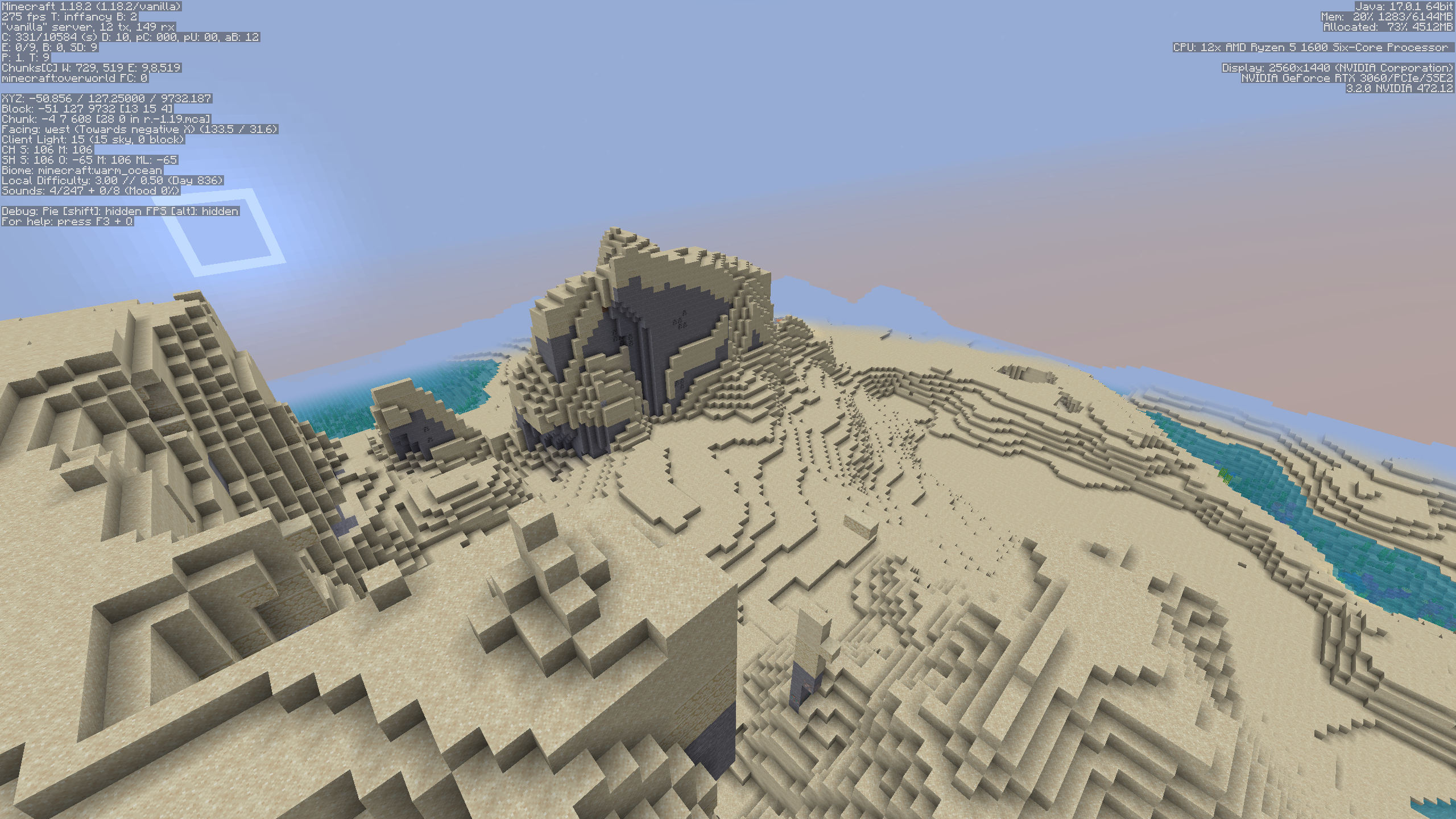 My current world was created around 1.13 and is currently in 1.18.2. Over the years I've moved a world border with updates and/or to obtain resources. I moved the border again today to try find a new ice spikes biome. I'd like to note that this is the first time since 1.18.x was released. According to F3, everything past the old world border (I expanded the border radius by 7000 blocks) is ocean with the ocean structures generating, however, it's actually just a desert or mountains. All of these 7000 blocks are reading as ocean and nothing else. It's not flat, it's generating peaks and valleys like it should. Rivers are still generating like normal, but quite a few have shallow coral reefs in (which actually looks pretty cool to be honest. Adds a little bit more to rivers).