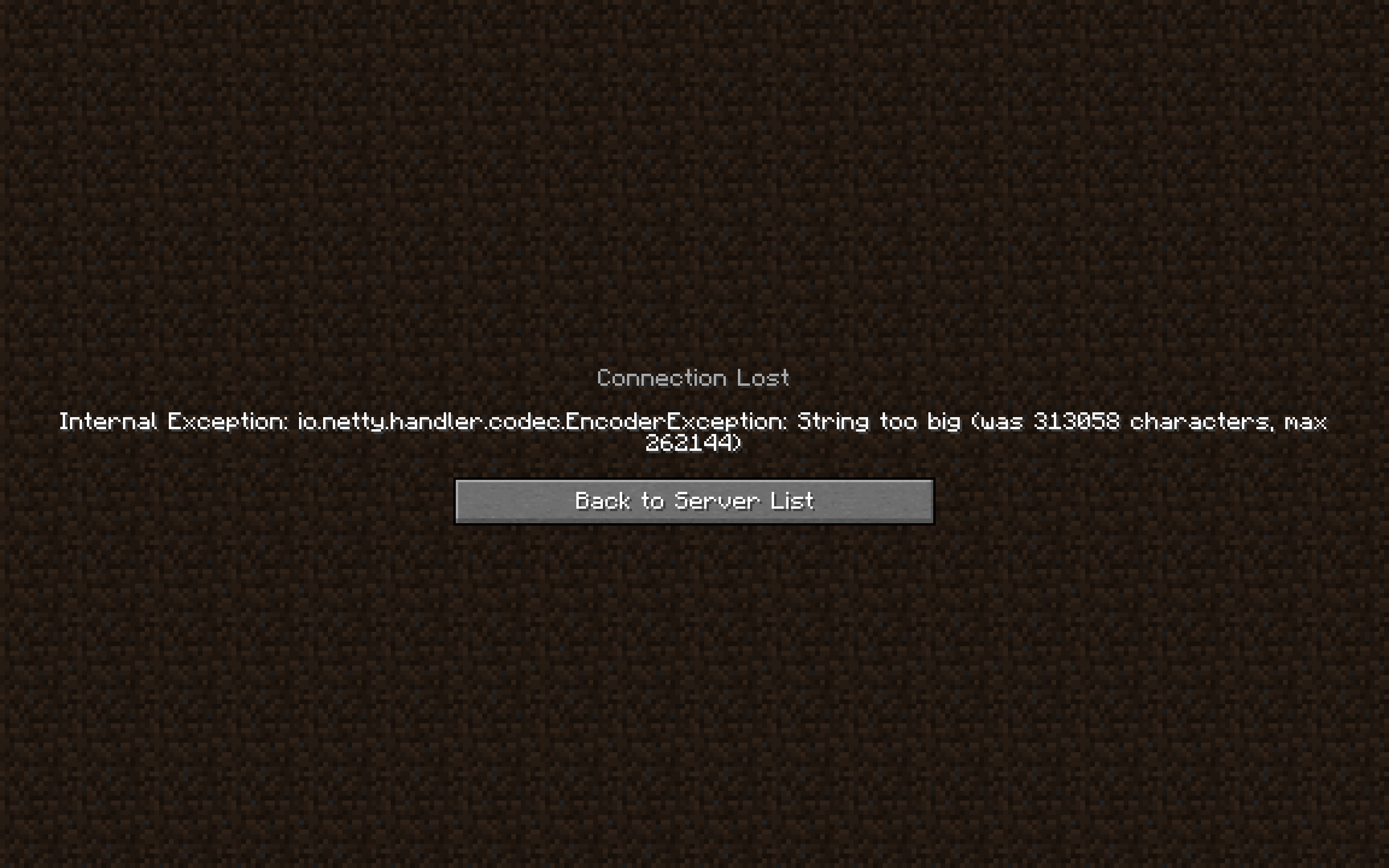 io.netty.handler.codec.EncoderException: String too big (was 313058 characters, max 262144)