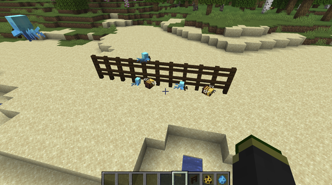 If an allay or bee is pushed (either by players or other entities) into the space of blocks that aren't completely solid like fences, hoppers, etc. they will stay there and their AI will be disabled. It has happened frequently without intentionally recreating the glitch. The attachment depicts allays and bees that are trapped like flies in a web