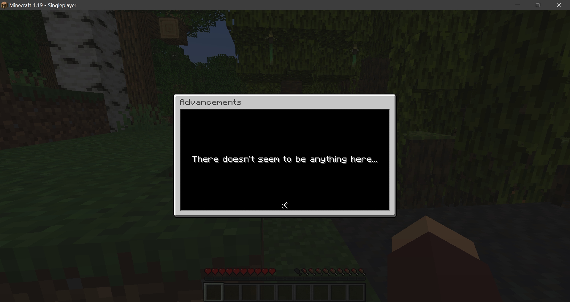 When entering the advancement screen Its says "there doesn't seem to be anything here"
