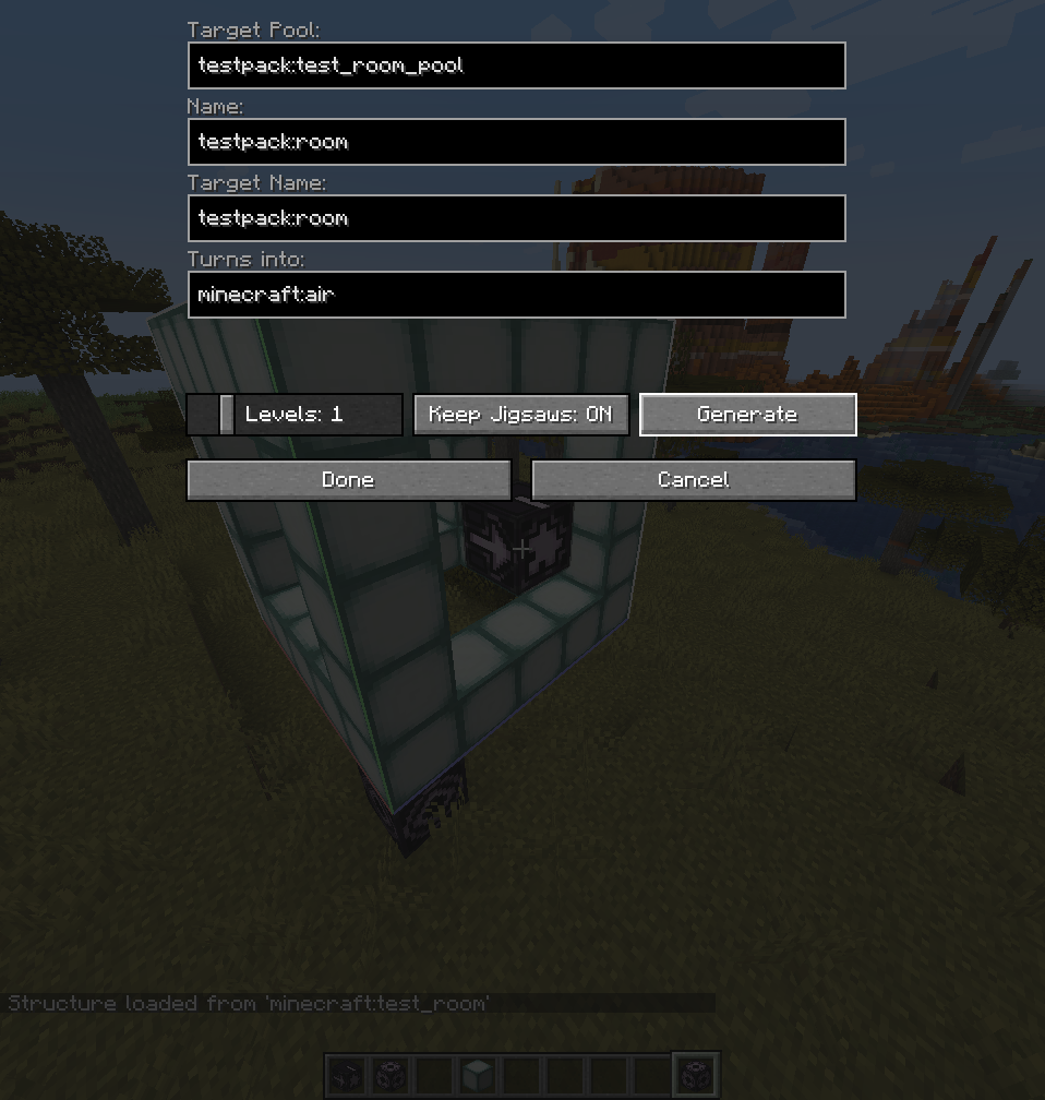 I have attached a small datapack made for testing this along with screenshots of me generating test_room using its jigsaw block 2 separate times and getting different results but in both cases the generated rooms jigsaw is misaligned.