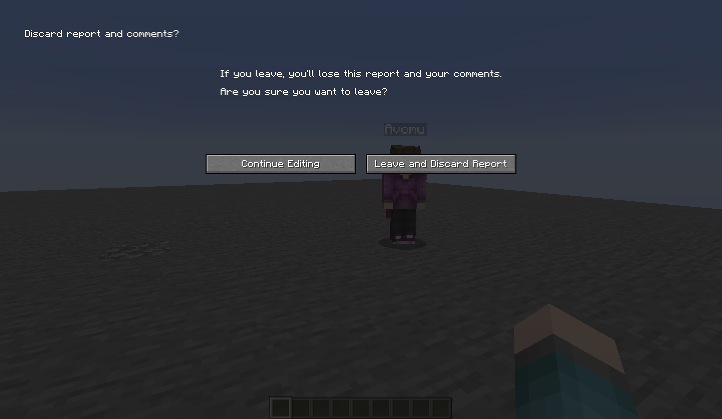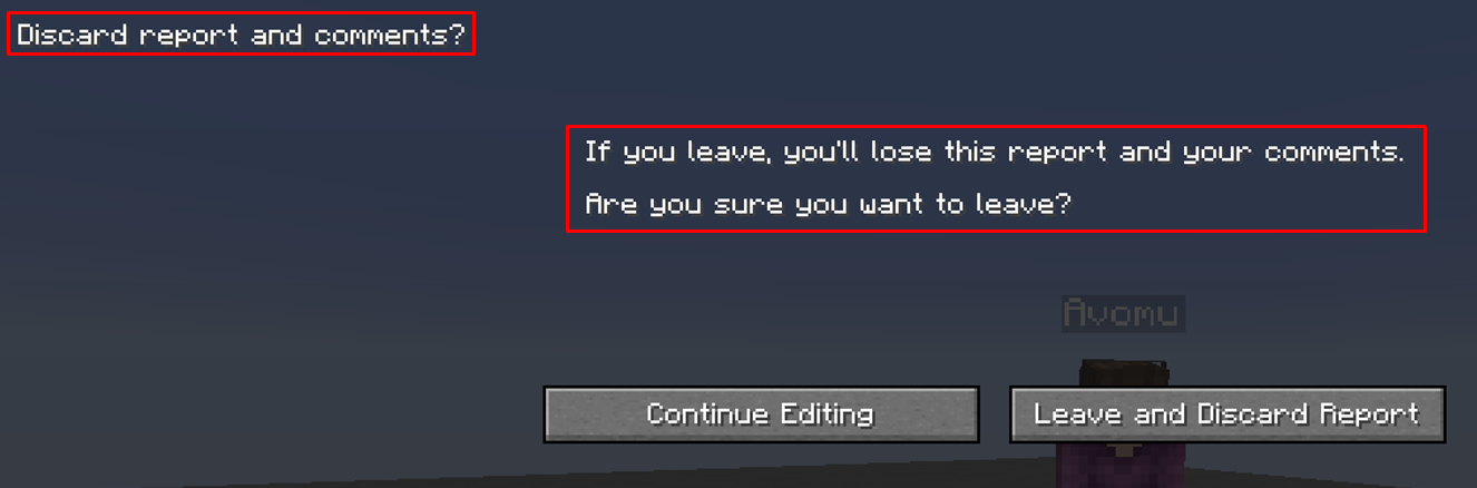 Text within the "Discard report and comments?" menu isn't horizontally centered.