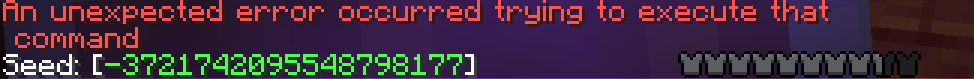 So /locate structure minecraft:stronghold only sends error message: "An unexpected error occurred trying to execute that command" Seed: -3721742095548798177