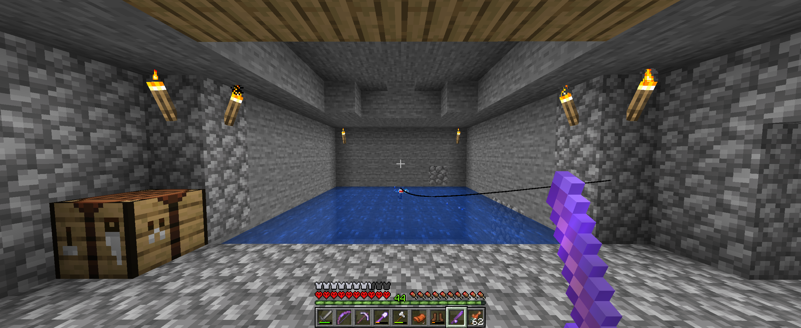 Fishing line is rendered offset to left of the Fishing Rod when playing with an aspect ratio with a lower width, such as 4:3. Fishing line is rendered offset to the right of the Fishing Rod when playing with an aspect ratio with a higher width, such as 21:9. Offset direction is reversed when the Fishing Rod is held in the left hand.