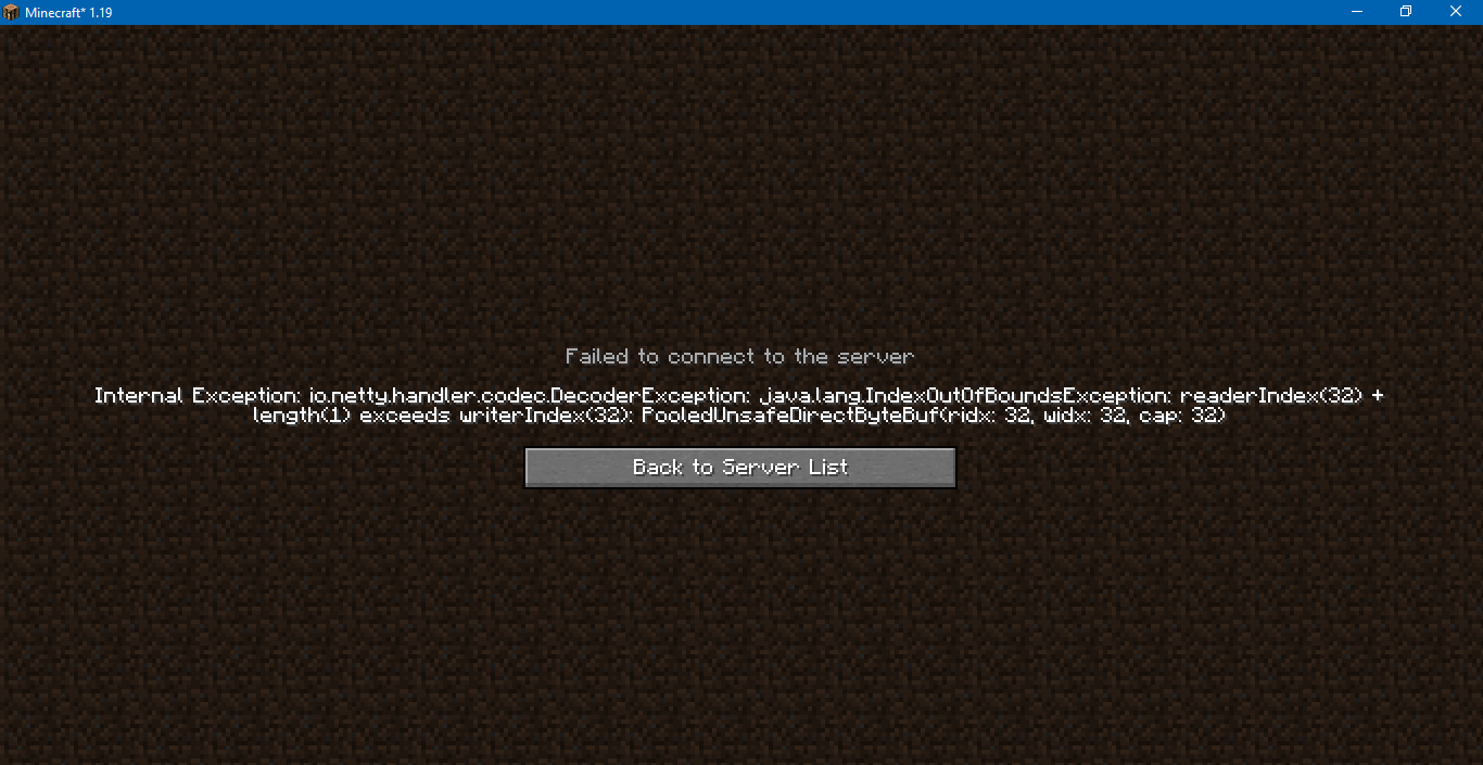 internal exception: io.netty.handler.codec.Decoderexception: java.lang.IndexOut OfBoundsException: readerIndex(28) + length(1) exceeds writerIndex(28): PooledUnsafeDirectByteBuf(ridx: 28, widx: 28, cap: 28