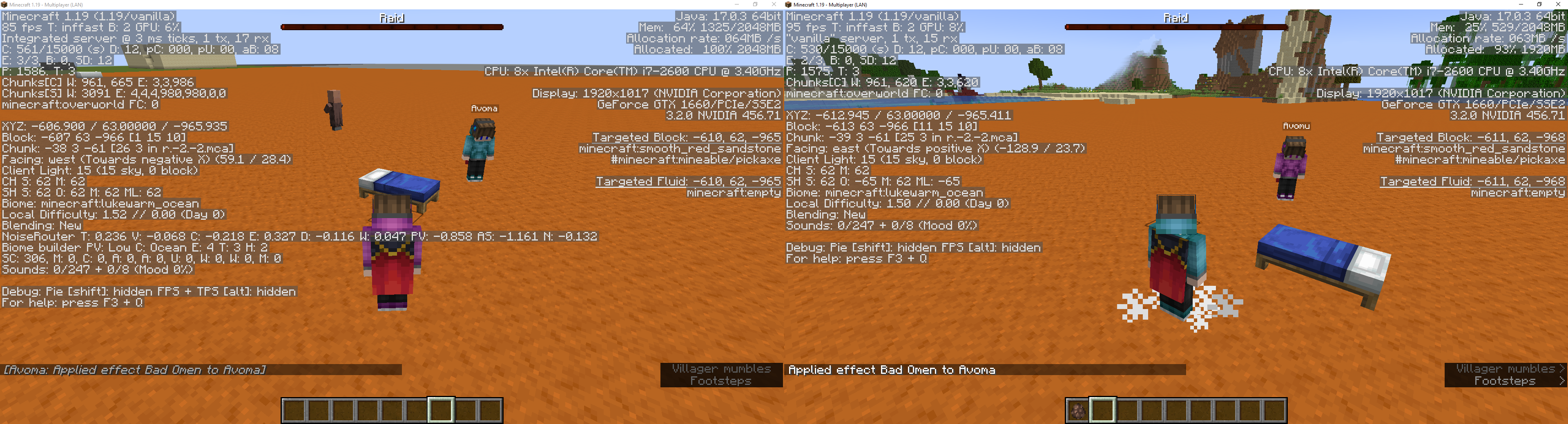 Particles produced from the bad omen effect being consumed cannot be seen by other players.