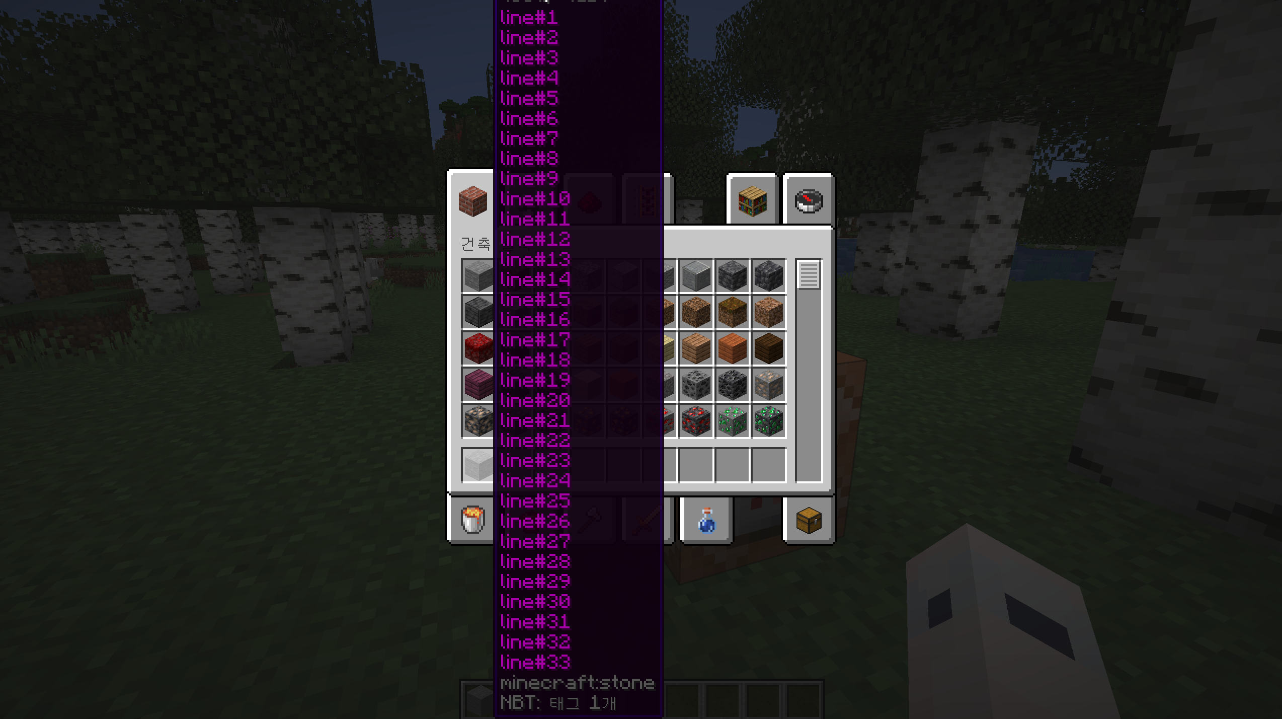 give @p stone{display:{Name:'[{"text":"tootip test","italic":false}]',Lore:['[{"text":"line#1","italic":false}]','[{"text":"line#2","italic":false}]','[{"text":"line#3","italic":false}]','[{"text":"line#4","italic":false}]','[{"text":"line#5","italic":false}]','[{"text":"line#6","italic":false}]','[{"text":"line#7","italic":false}]','[{"text":"line#8","italic":false}]','[{"text":"line#9","italic":false}]','[{"text":"line#10","italic":false}]','[{"text":"line#11","italic":false}]','[{"text":"line#12","italic":false}]','[{"text":"line#13","italic":false}]','[{"text":"line#14","italic":false}]','[{"text":"line#15","italic":false}]','[{"text":"line#16","italic":false}]','[{"text":"line#17","italic":false}]','[{"text":"line#18","italic":false}]','[{"text":"line#19","italic":false}]','[{"text":"line#20","italic":false}]','[{"text":"line#21","italic":false}]','[{"text":"line#22","italic":false}]','[{"text":"line#23","italic":false}]','[{"text":"line#24","italic":false}]','[{"text":"line#25","italic":false}]','[{"text":"line#26","italic":false}]','[{"text":"line#27","italic":false}]','[{"text":"line#28","italic":false}]','[{"text":"line#29","italic":false}]','[{"text":"line#30","italic":false}]','[{"text":"line#31","italic":false}]','[{"text":"line#32","italic":false}]','[{"text":"line#33","italic":false}]']}} 1// give command