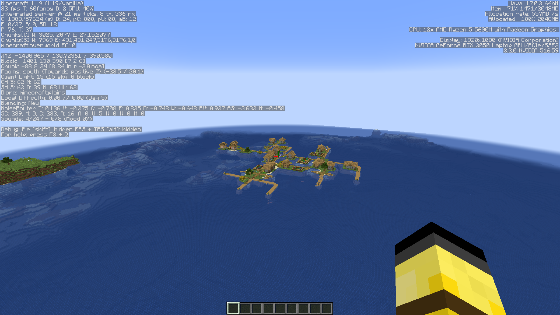 I'm flying around trying to find a rare biome and the biome tag in the f3 screen isn't updating, it just says I'm in the plains biome even though I'm above a deep ocean.