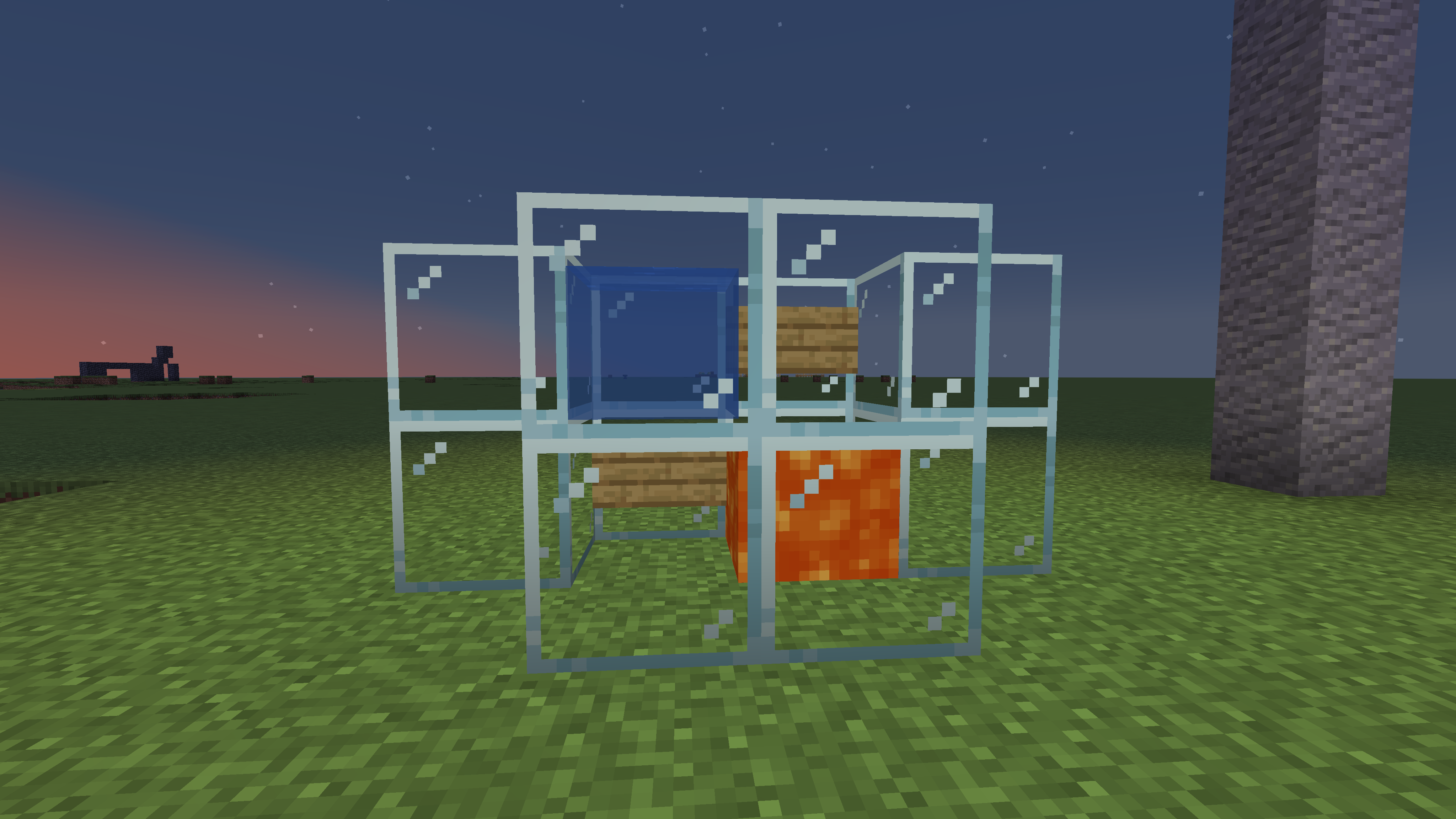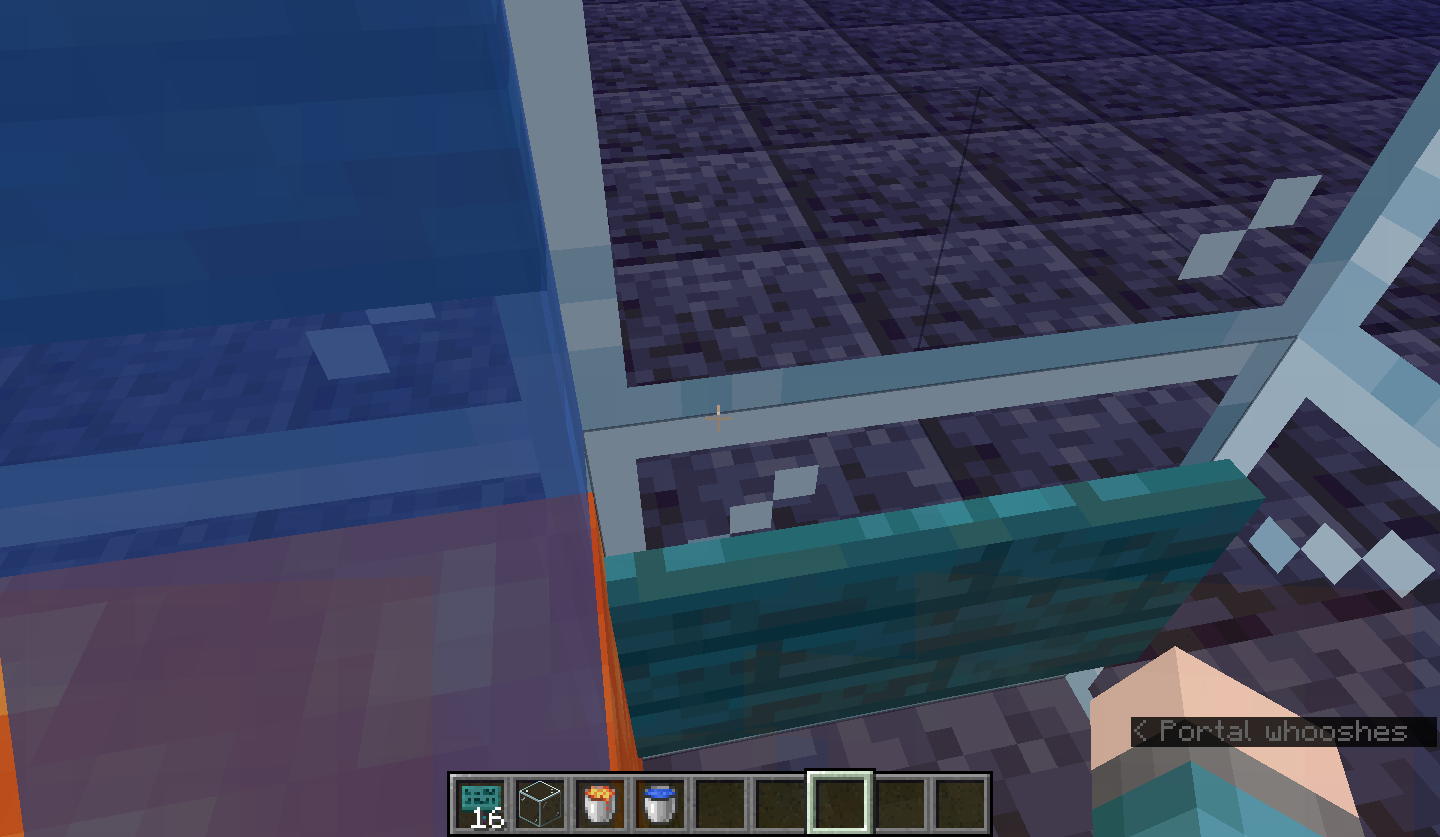 2) Stand in-between the lava and water, so the head is submerged whilst flames are being shown