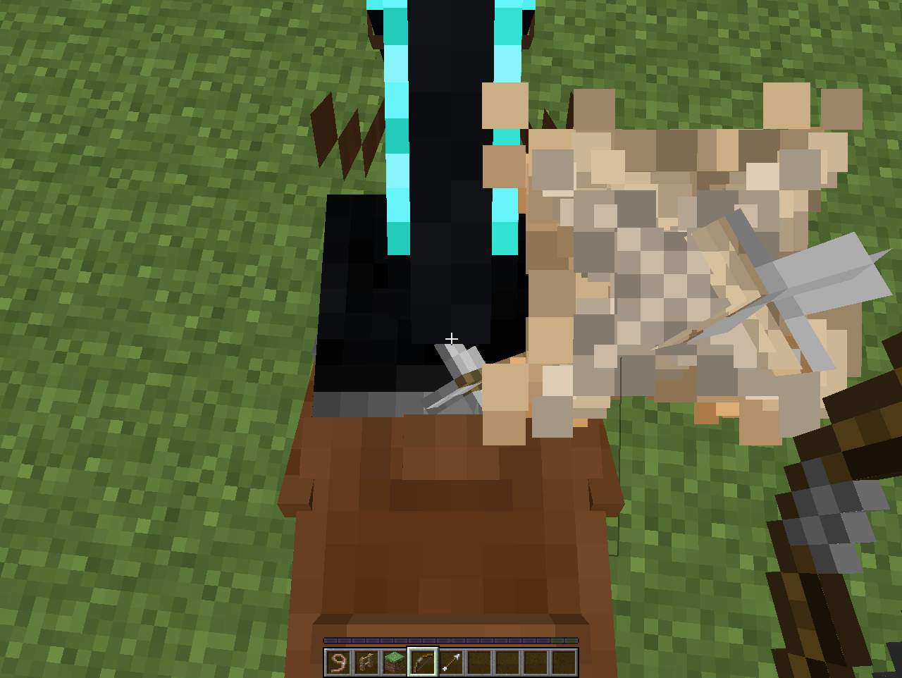 I was messing around and i was riding a tamed horse in creative with armour and a saddle and i was riding the horse when I accidently shot an arrow at my horse. (shot looking strait down at horse back) It started glitching and spinning like crazy on top of the horse. When I moved my horse away the arrow fell to the ground. I started laughing at this crazy bug.