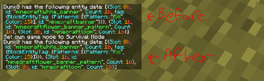 By default when a banner has a pattern on it it has the tag "BlockEntityTag: {id: "minecraft:banner"}", but when placed down and then picked back up it loses that tag. It doesn't affect the appearance of the banner or anything significant, all it does is make it so the banner can no longer be stacked with banners that haven't been placed yet, even if they are identical otherwise.
