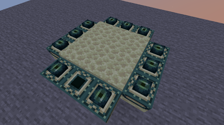 When an end portal is activated, any blocks that exist within the portal frame will be deleted to make room for the portal blocks. This block deletion will not result in any of the blocks making sounds or generating particles to accommodate this breaking, which is inconsistent with most other block breaking events since 1.13.