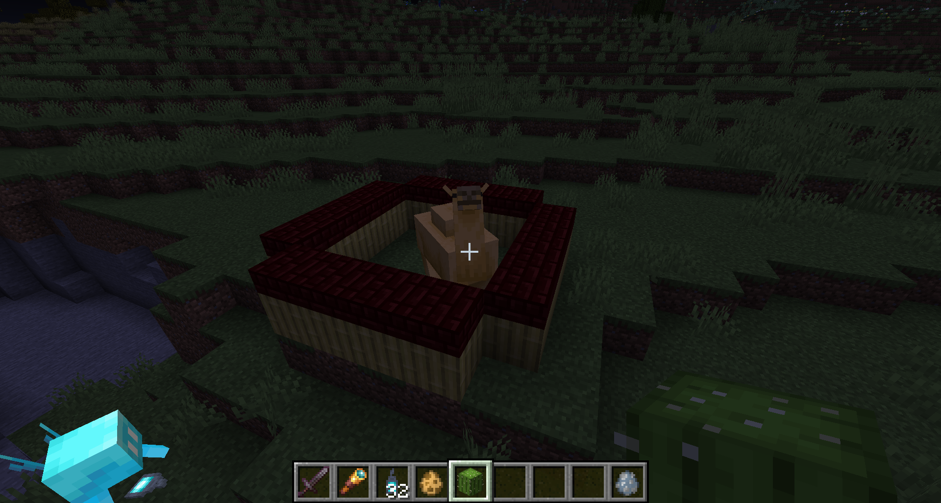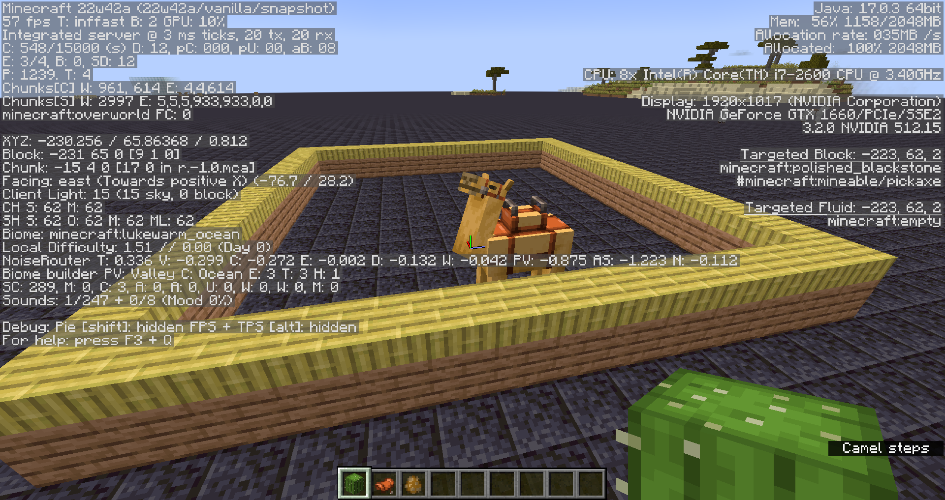 Although this was fixed and camels can indeed pathfind over fences and walls now, they still cannot pathfind over a block with a slab on it in 1.19.3 Pre-2, which is of a similar height. Is this intended? The original bug report had similar pictures to this.