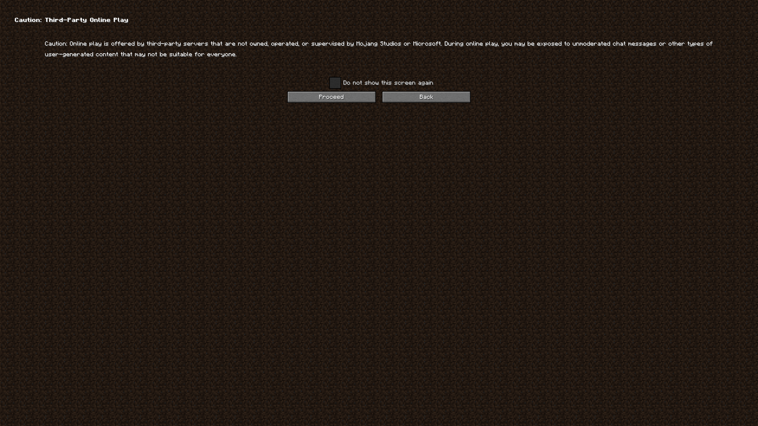 Despite the fix to MC-206854 the Multiplayer warning: Caution: Third-Party Only Play is still of centered