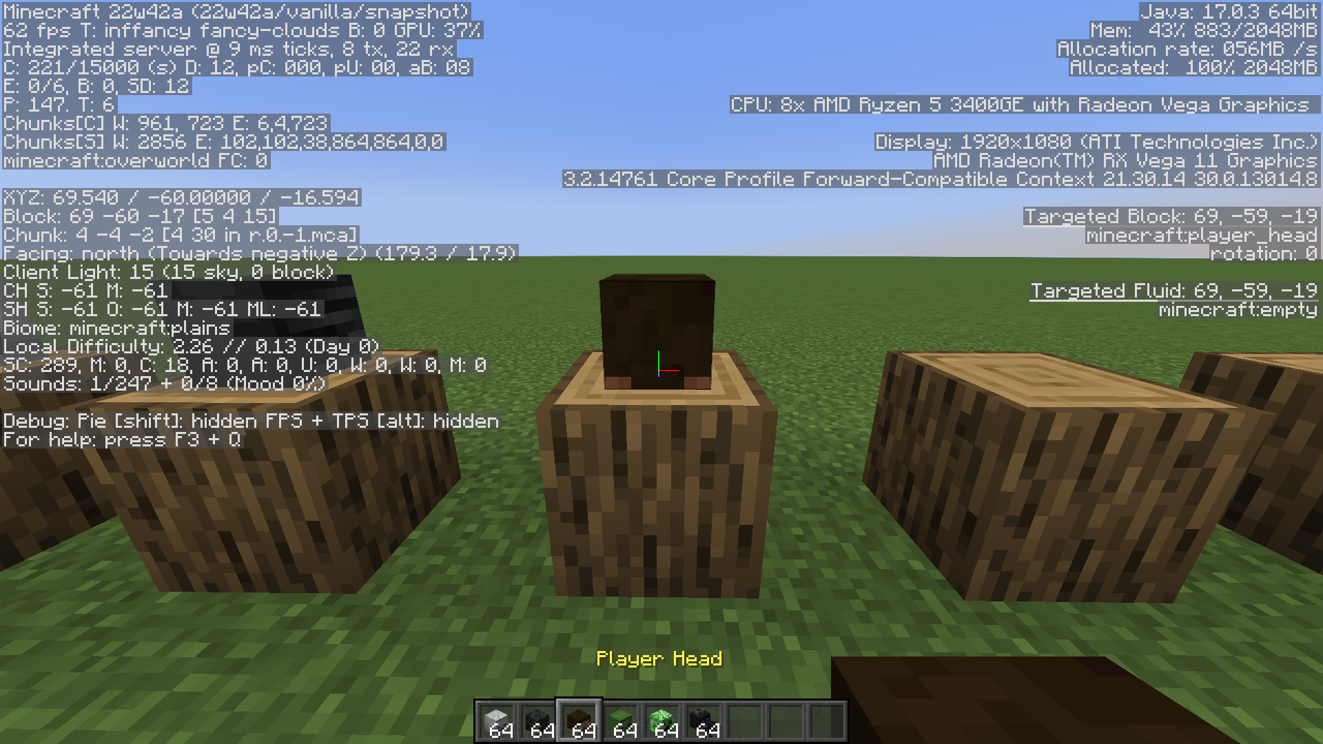 Normally, when you place a mob head on top of a block, it should be facing you but in the case of 22w42a, mob heads face the opposite way when placed.