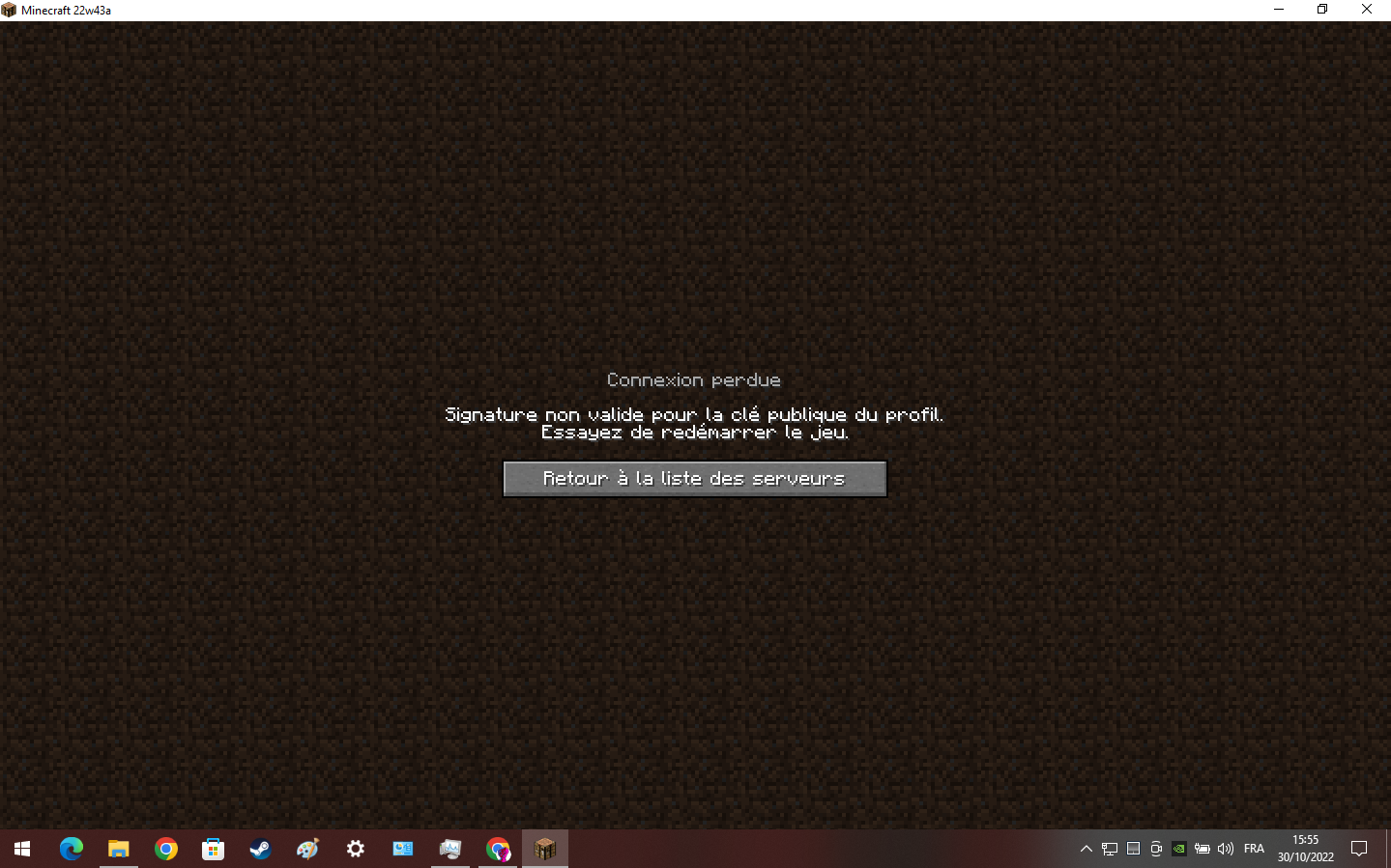 since the snapshot 22w43a, trying to connect to a server with online-mode=false will result on the following message "Invalid signature for profile public key".