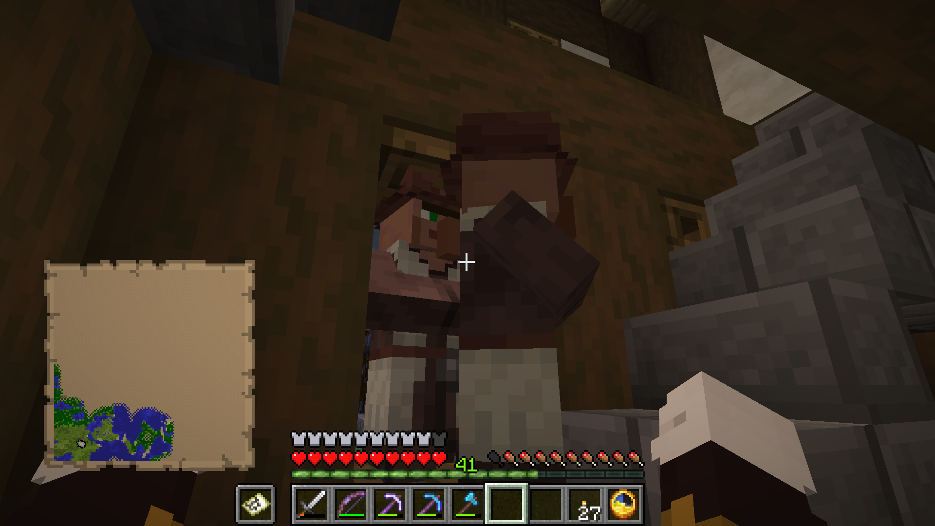 I've included images showing the exterior and interior with the villagers trapped, as well as the interior after setting the trapdoors to horizontal with the villagers then able to come into the building.