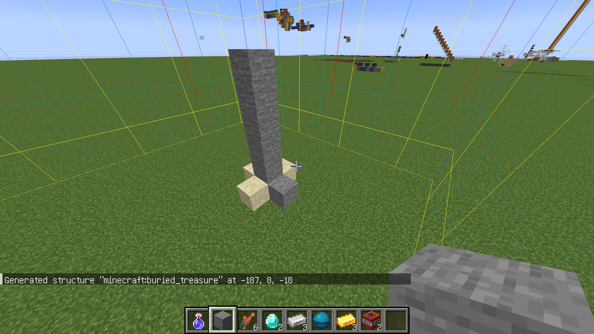 /place structure buried_treasure 8 -60 8/place structure buried_treasure 8 -60 8→ ✔ The chest is placed at the top of the pillar