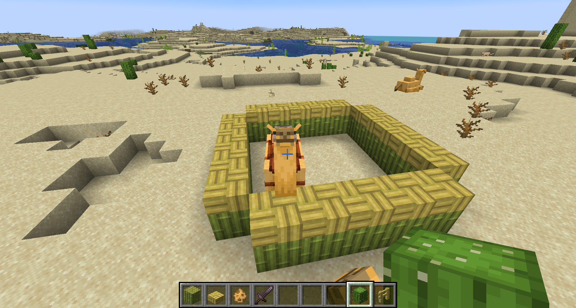 2. Build a similar enclosure but with a block and a slab instead of fences. Despite being the same height and the camel being able to walk over them, it wont attempt to and will remain trapped.