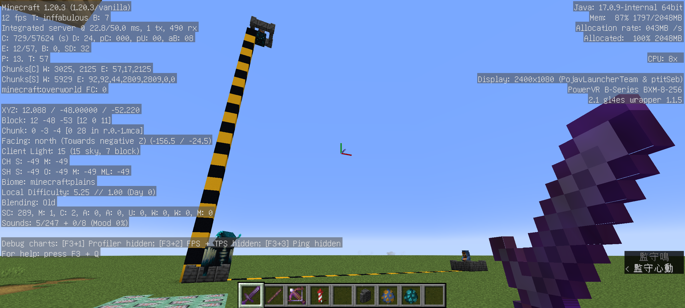 Please provide short video of reproducing this issue and a screenshot with the F3 Debug menu enabled.