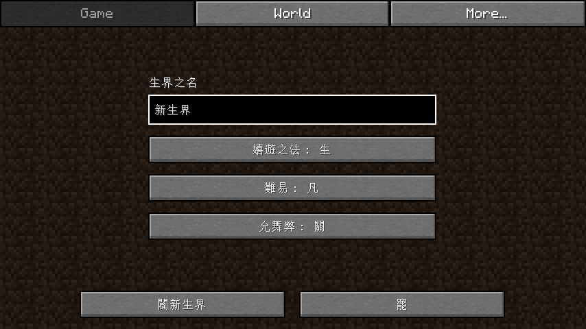 In the newly released 23w05a snapshot, we have three new strings for Create World screen: "Game", "World", and "More". However, these strings are not released on Crowdin. meaning they will remain English even in other languages.