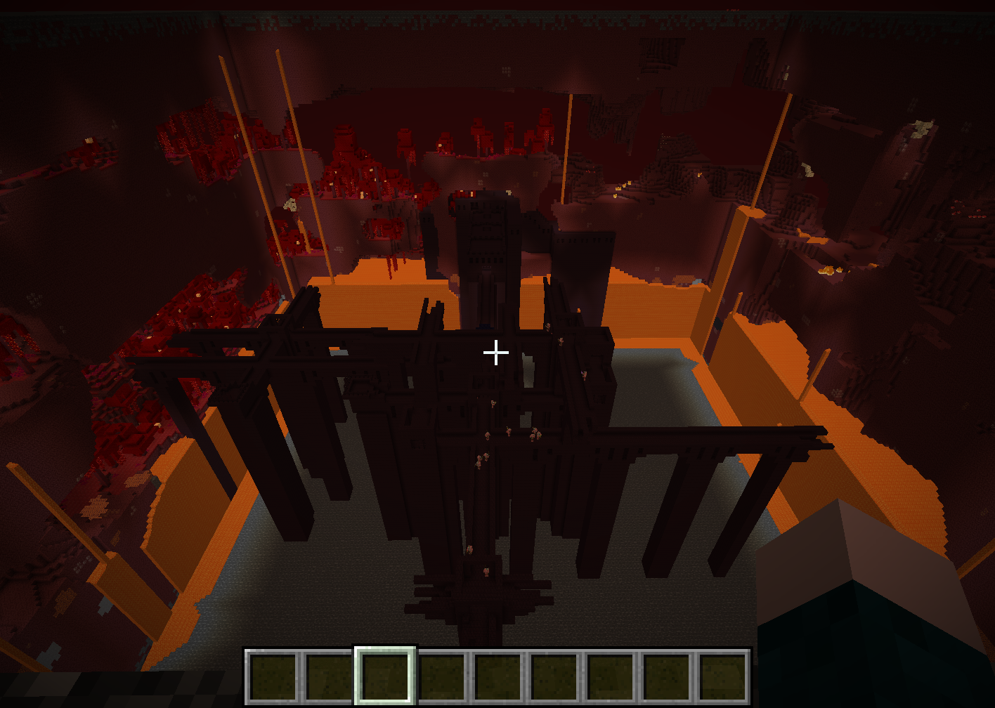 Screenshot is after a while in location with glowing repeat command blocks for blazes and wither skeletons