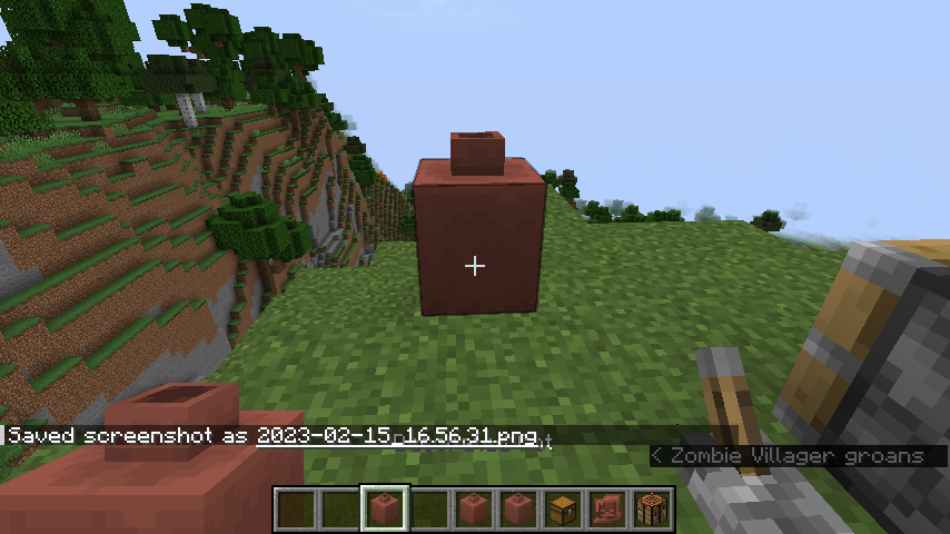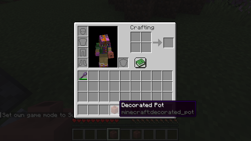 When using the Pick Block function in Creative mode on a blank pot crafted from four bricks or a pot that has been obtained from the Creative inventory then placed and broken, it will not select a slot containing one of those pots, and will instead create a new, NBT-less pot item.