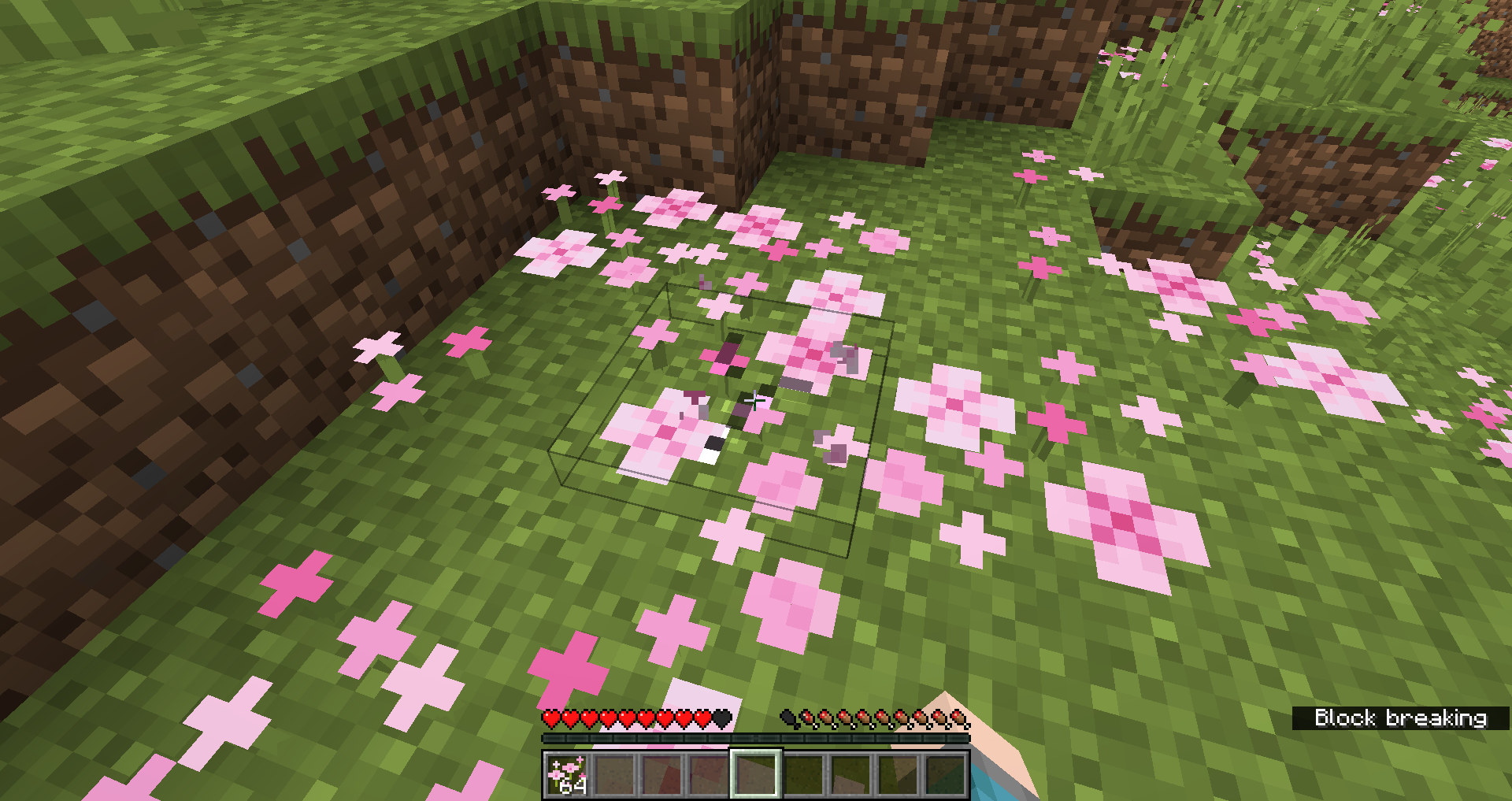 Unlike the other flowers the Pink Petals aren't insta-mined. They have about a 1 second break delay before broken.