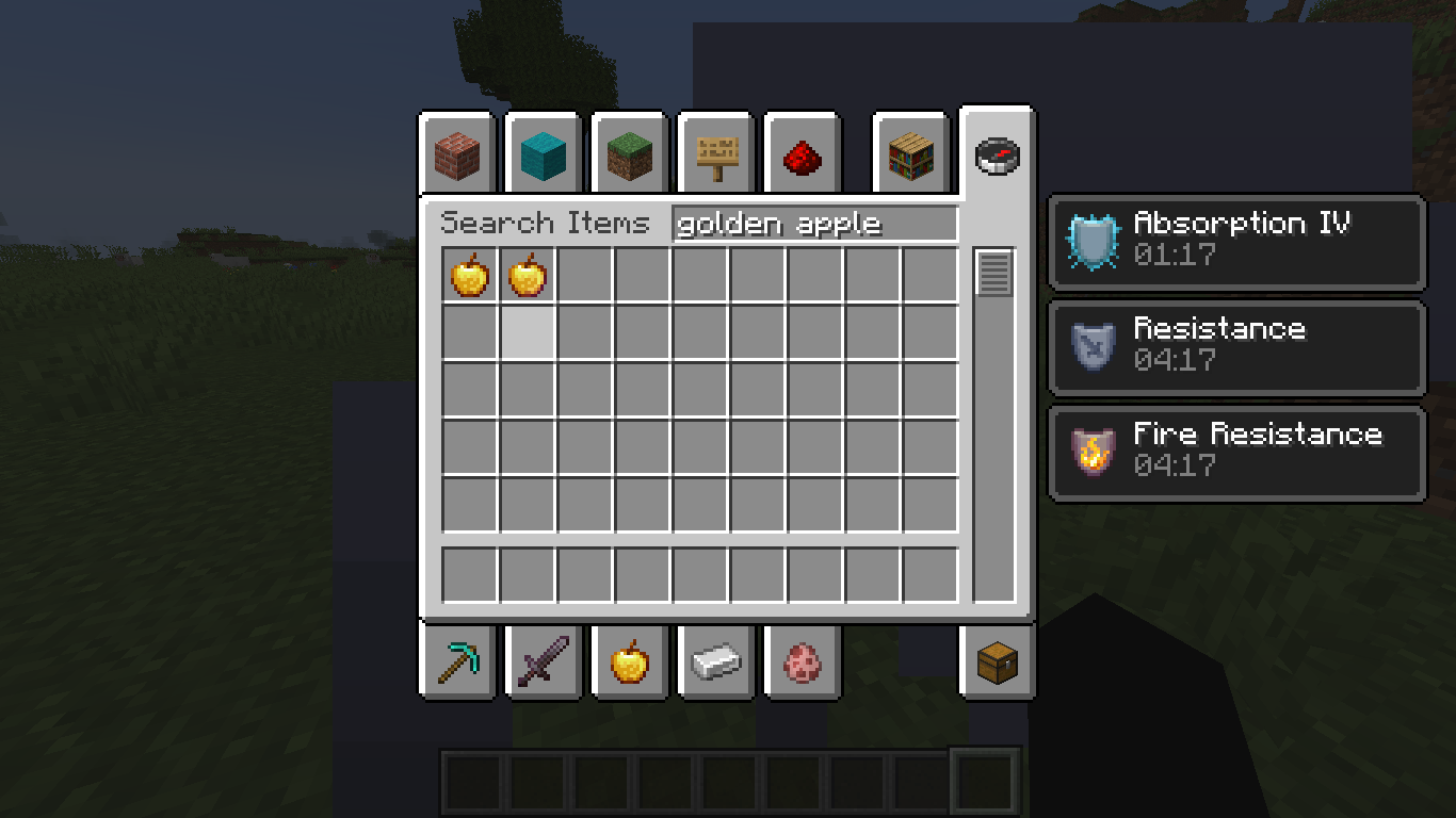 Compare, in both pics, the items: golden apple, enchanted golden apple, water breathing potion and enchanted leather boots.