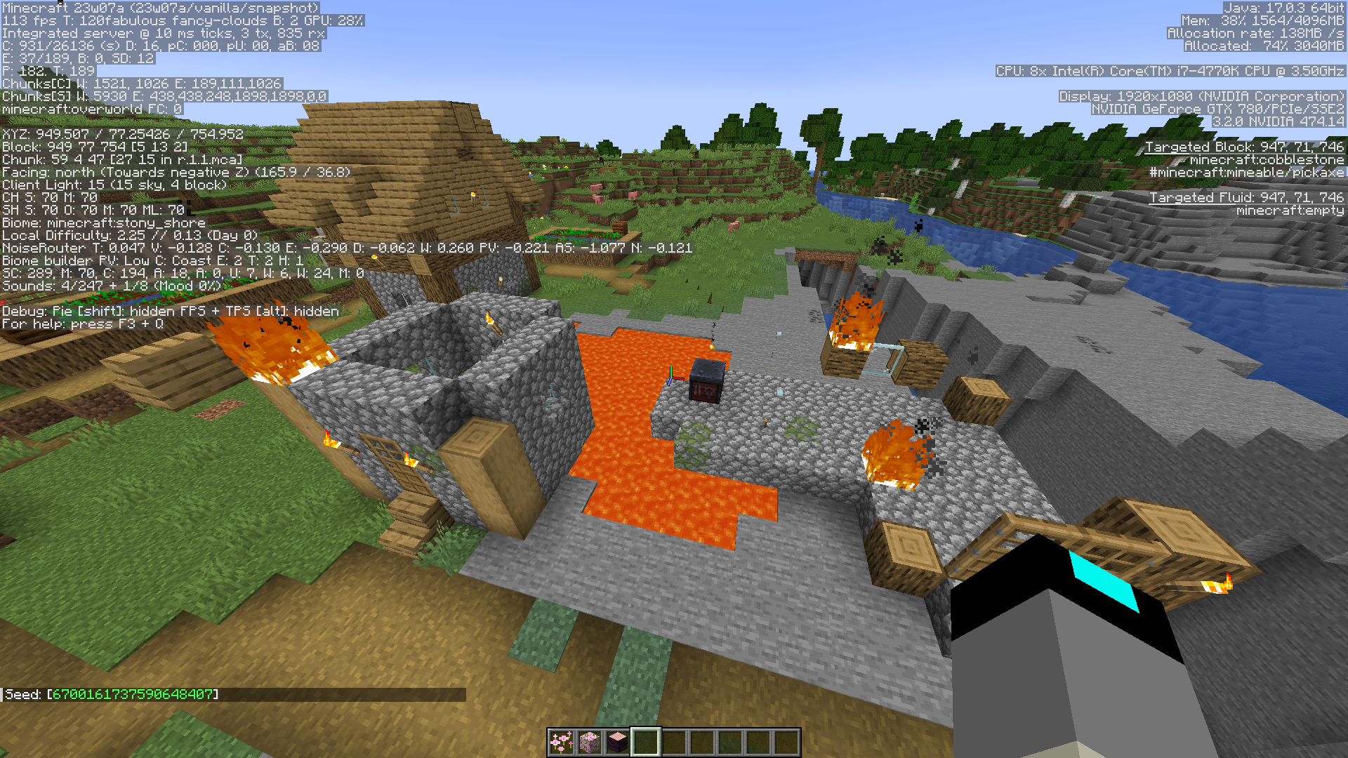 Generation issue with lava lakes and villages, similar to other bugs but this particular case does not replace parts of village structures with lava, rather spawns lava directly underneath.