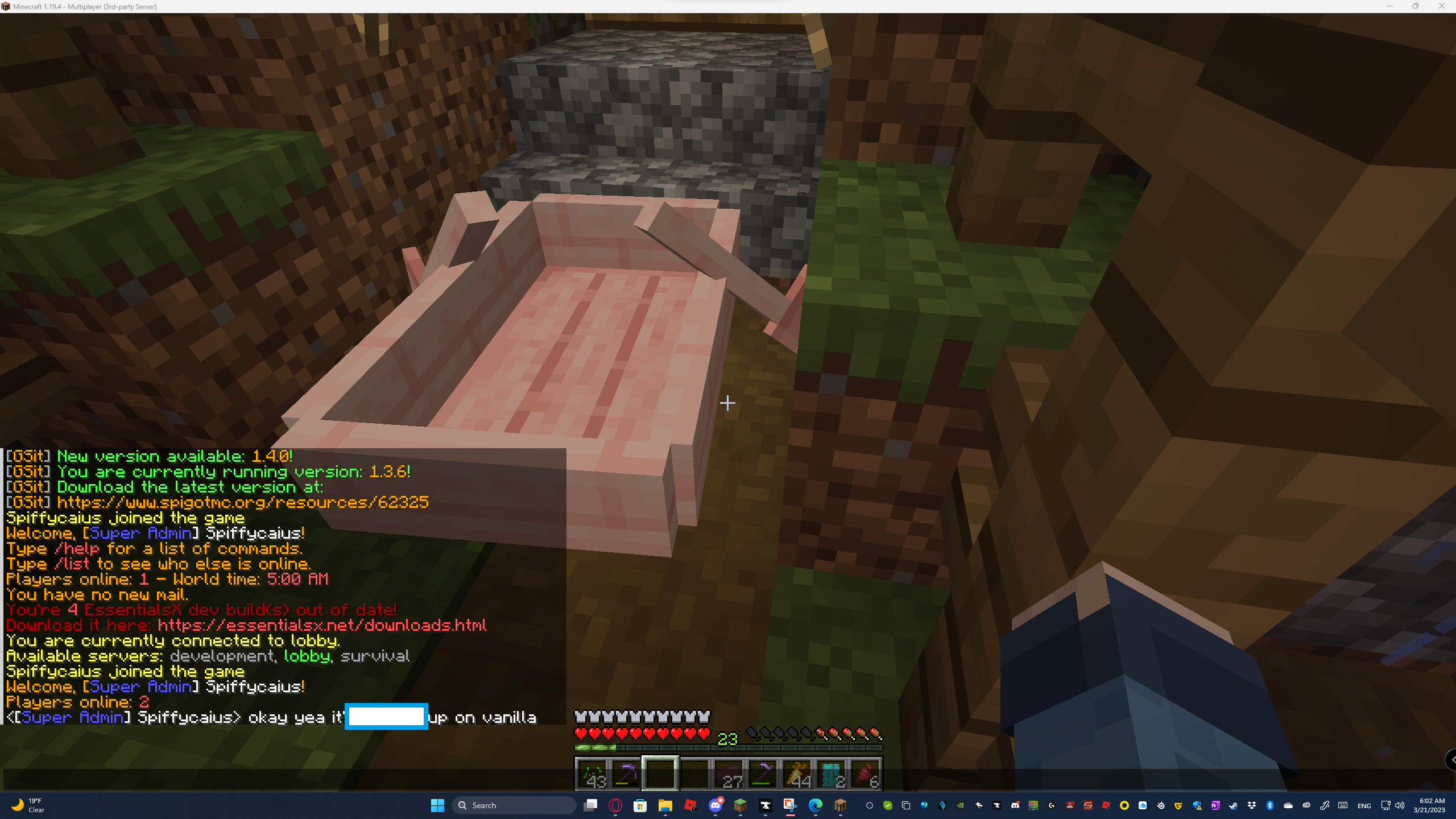The server is running on Paper 1.19.3, I'd presume the 1.20 experimental data pack wouldn't work, nor would there be a reason to even test it out on our main server. (In other words it doesn't have it), I don't believe the plugins are the issue either.
