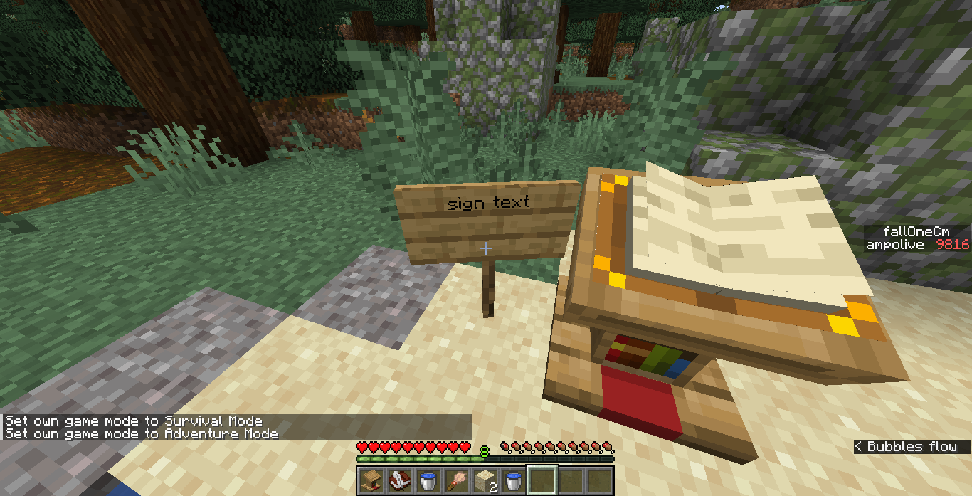 Players can now edit signs in adventure mode. This is inconsistent with the behavior of other blocks in adventure mode, which mostly cannot be altered by the player.