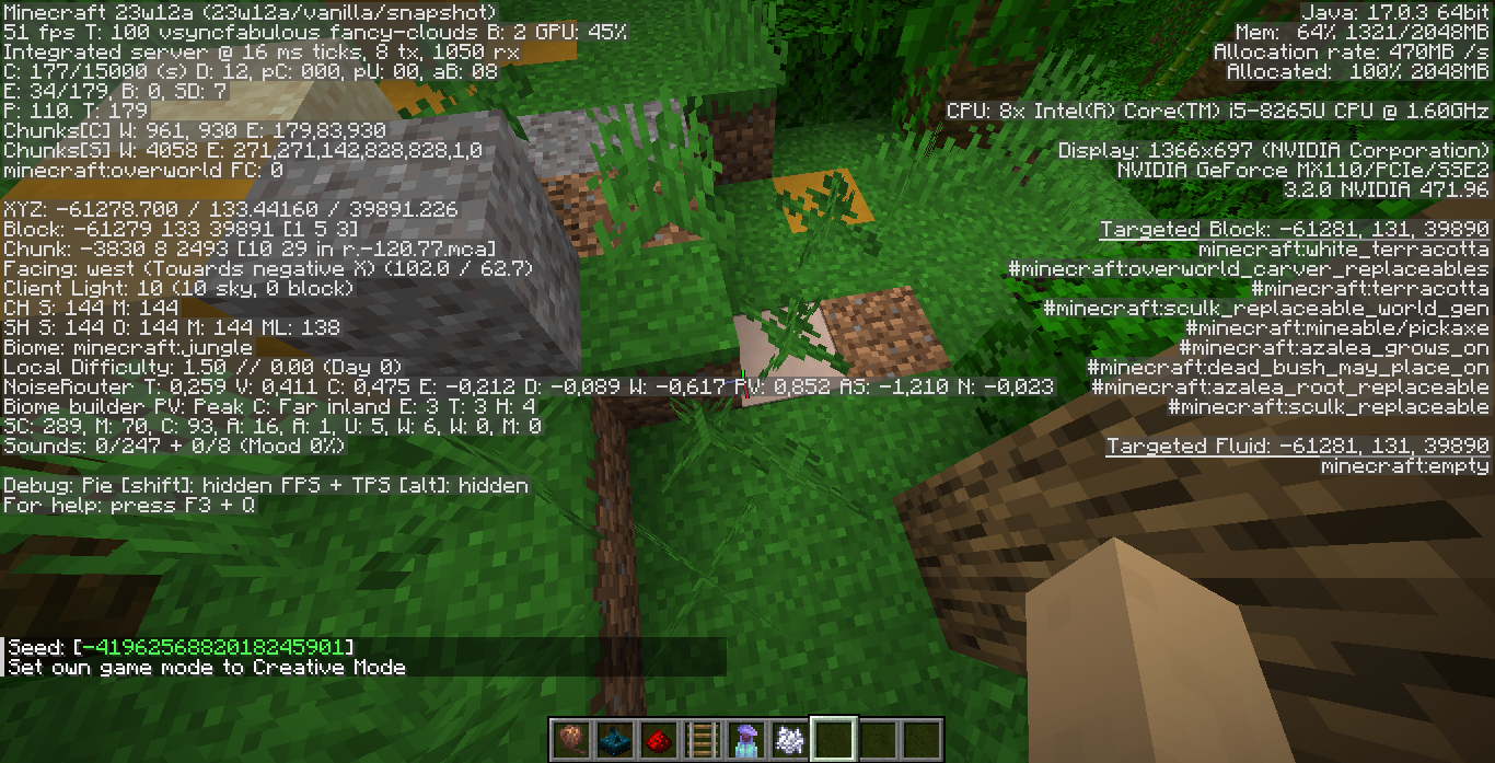 Location: /execute in minecraft:overworld run tp @s -61278.70 133.44 39891.23 102.00 62.70Linked issues