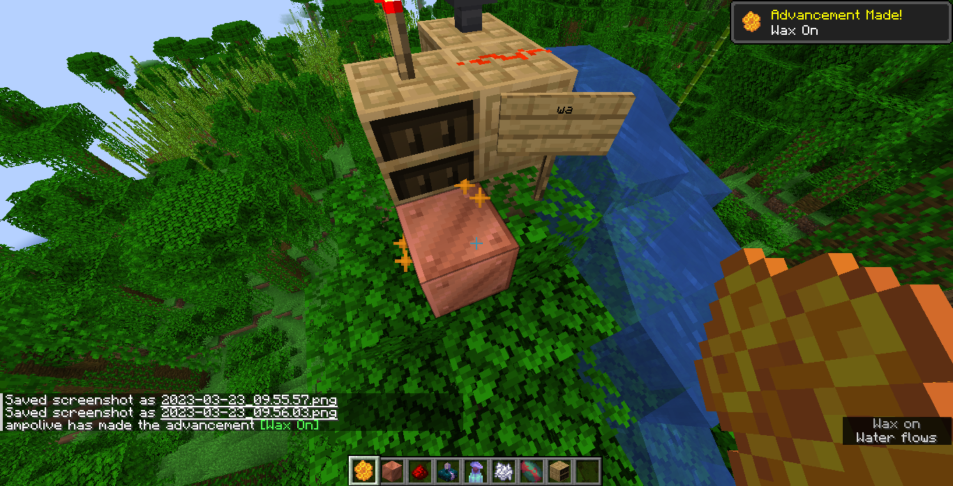 Applying honeycomb on a sign does not grant player the "Wax On" advancement, though it is the same action and uses the same sound as applying honeycomb to copper blocks.