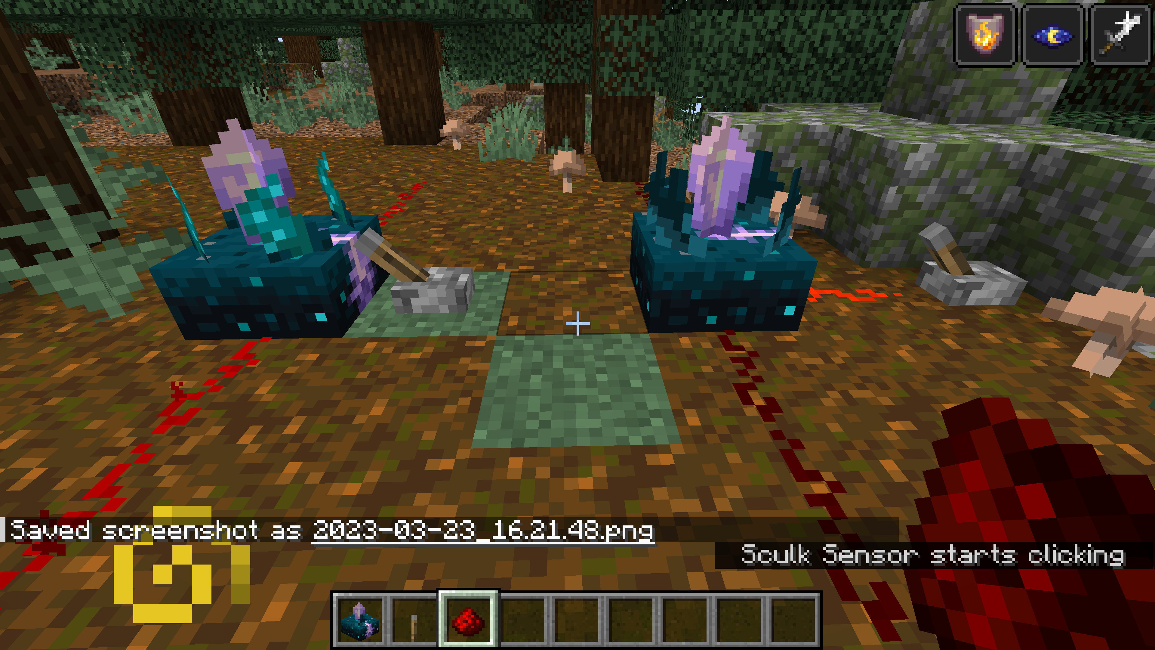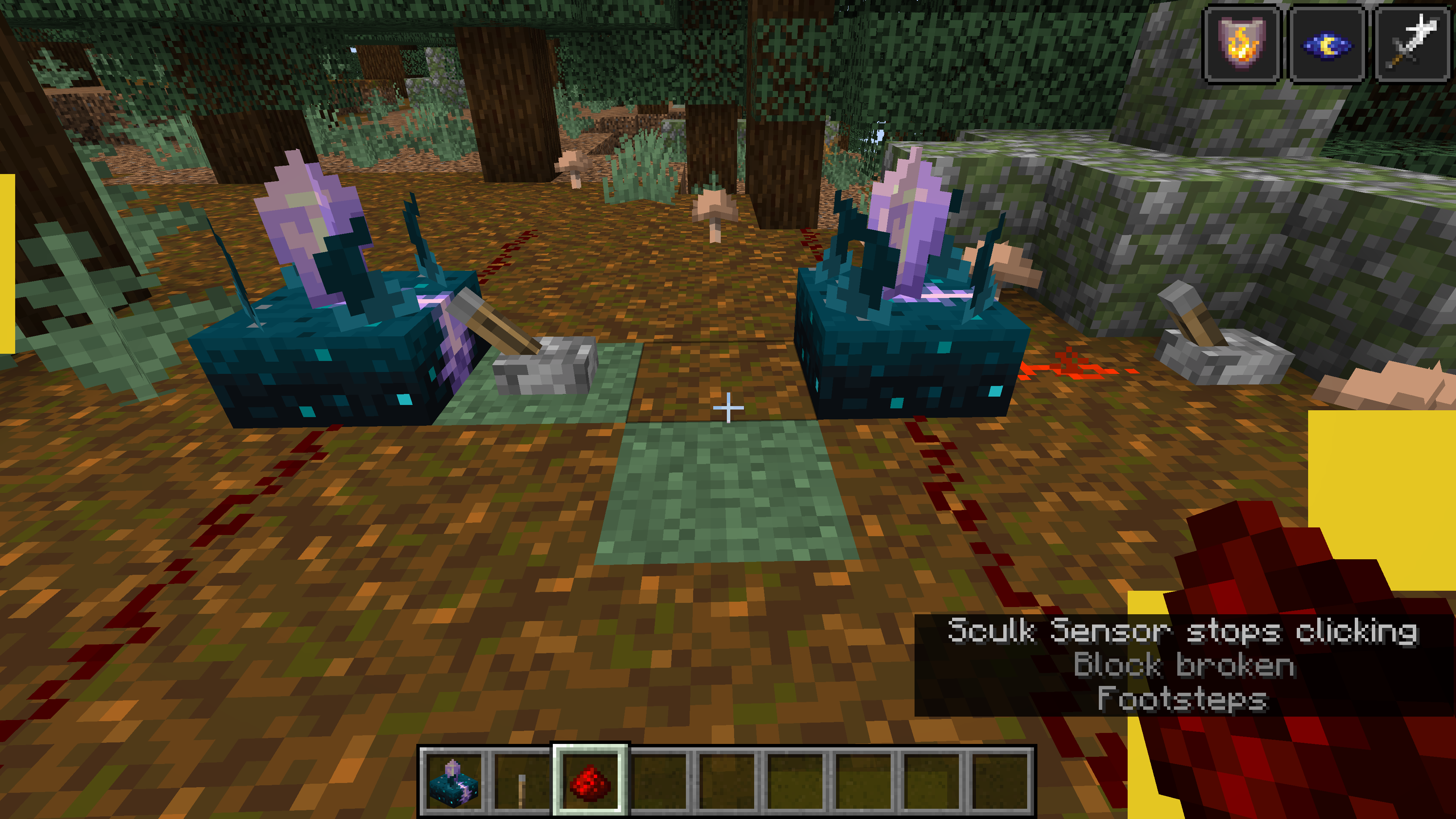 In the following pictures, I put two calibrated sculk sensors on the ground, one with a lever next to it, the other with a powered redstone dust next to it. Then I jump in order to make the vibration. However, the sensor on the left receive this vibration signal (the redstone dusts are activated), which works incorrectly, and the sensor on the right works correctly.