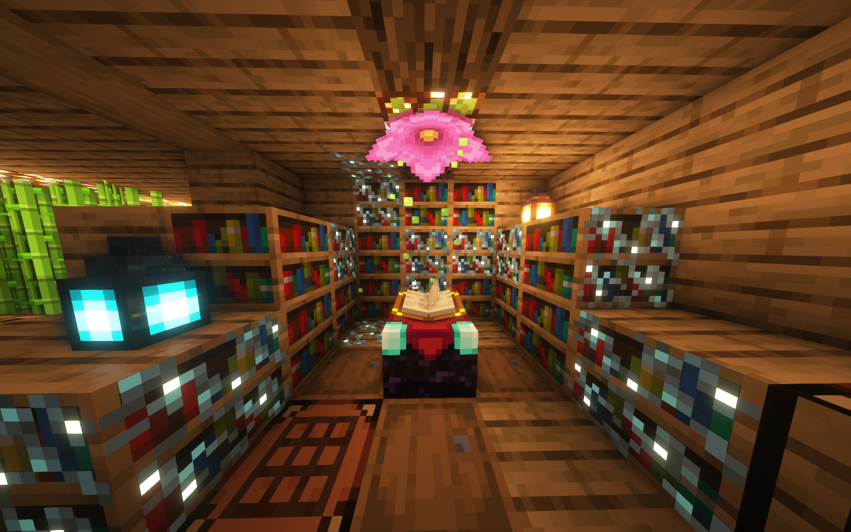 The Glow Lichen block the bookshelves so the Enchanter doesn't get the bookshelves.