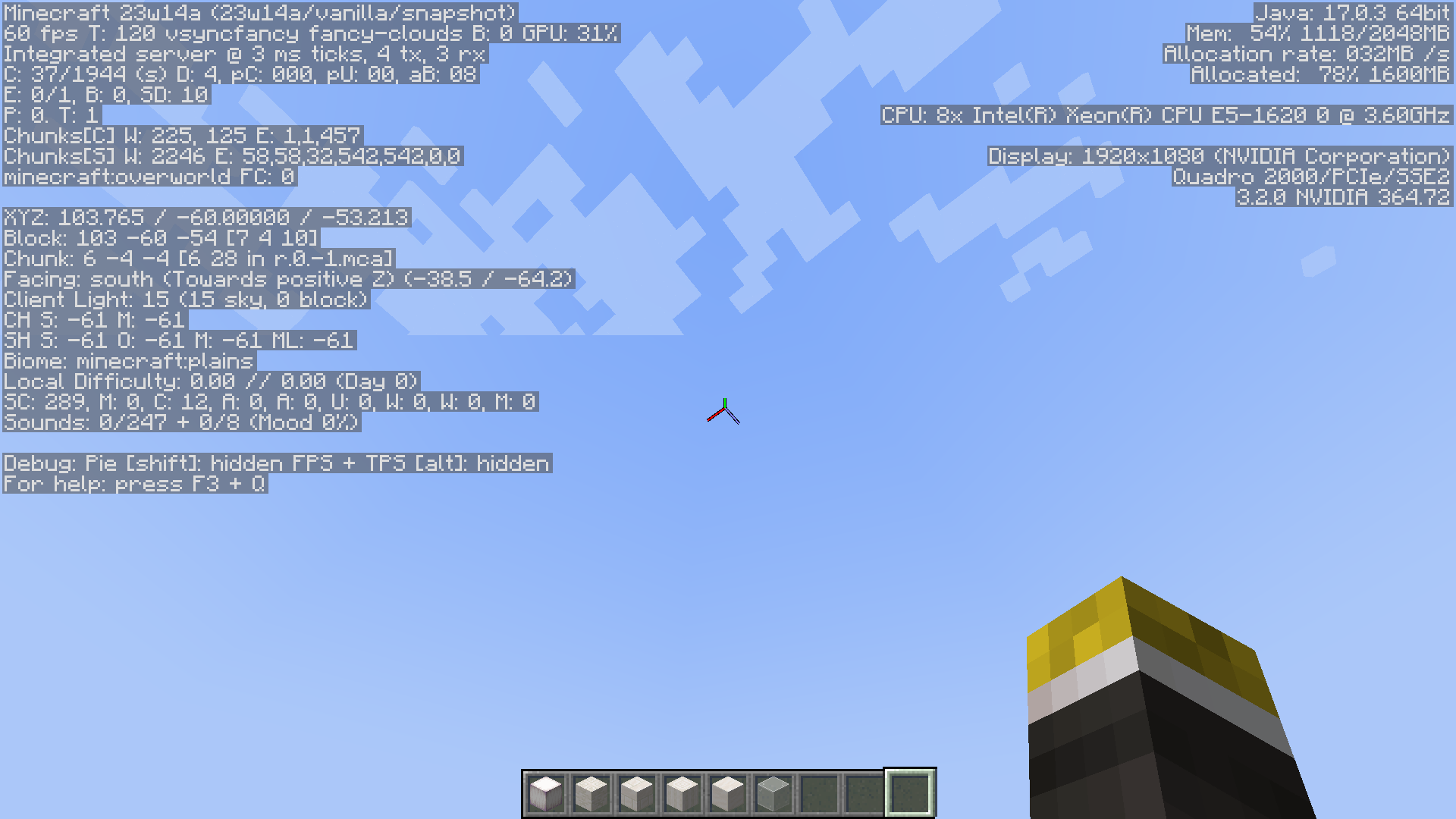 The fog that obscures clouds doesn't always work properly and when you are at certain heights and angles, the fog will suddenly take up over half the screen. I am not using any resource packs.