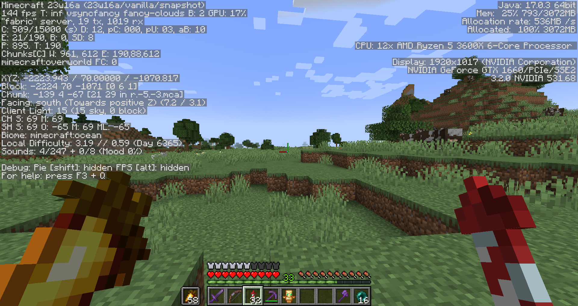When I tried to generate new chunks near existing ones on my server, minecraft kept crashing. When I generate new chunks separately from the old ones, there's no crashes. Chunks were also on top of each other, floating shipwrecks appeared, and there was ocean below existing terrain. Then i tried to open this world in singleplayer (not on the fabric server) same crash occured. This world is very old, it has chunks from 1.13.2, but these ones are recent (on screenshots and world file).