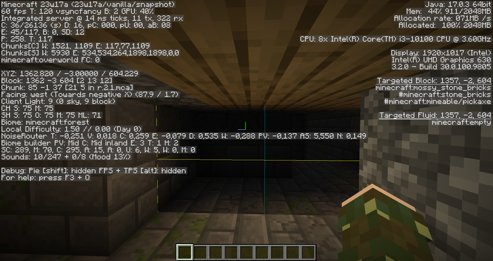 2.Execute command /tp 1362 100 603