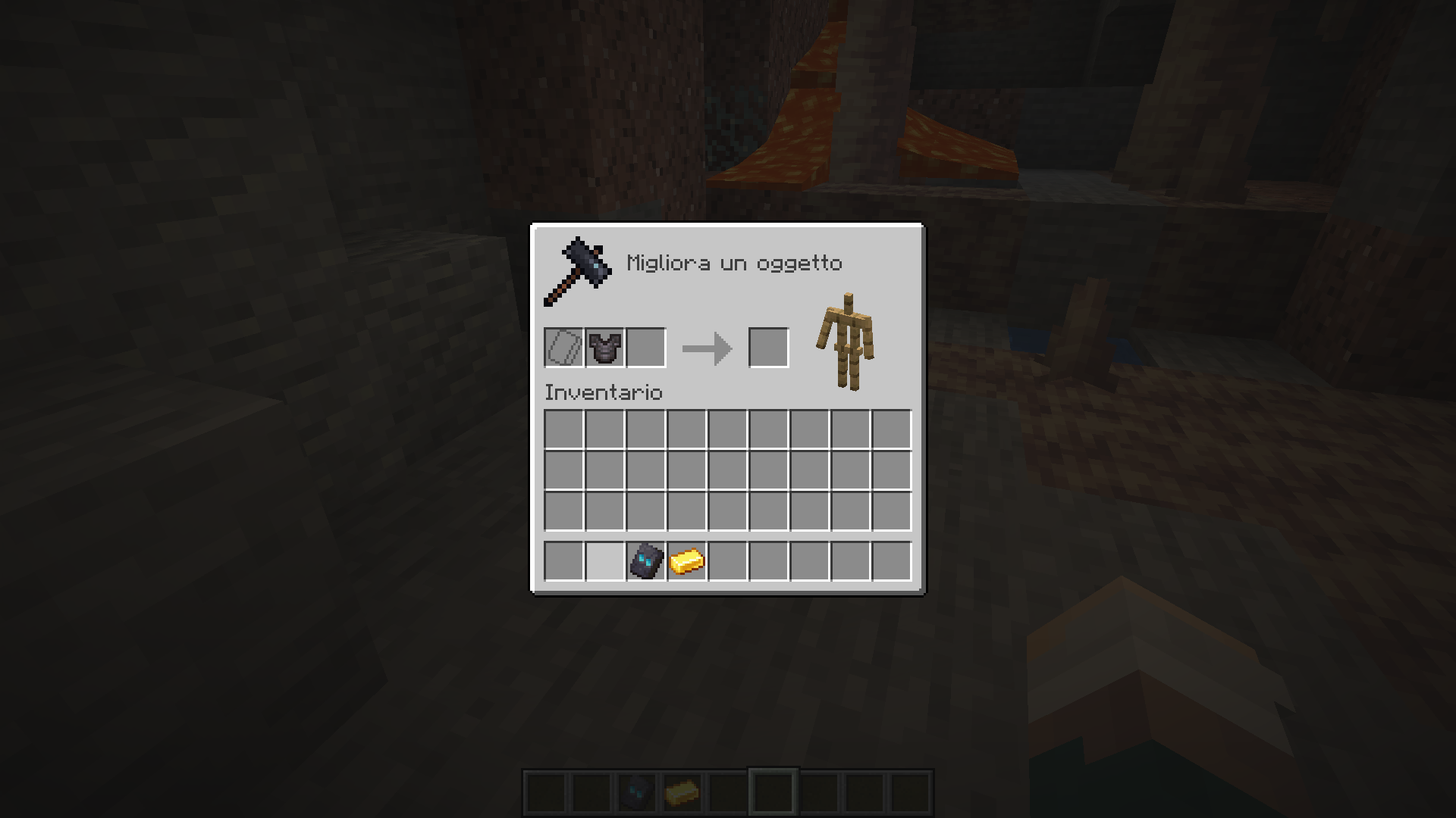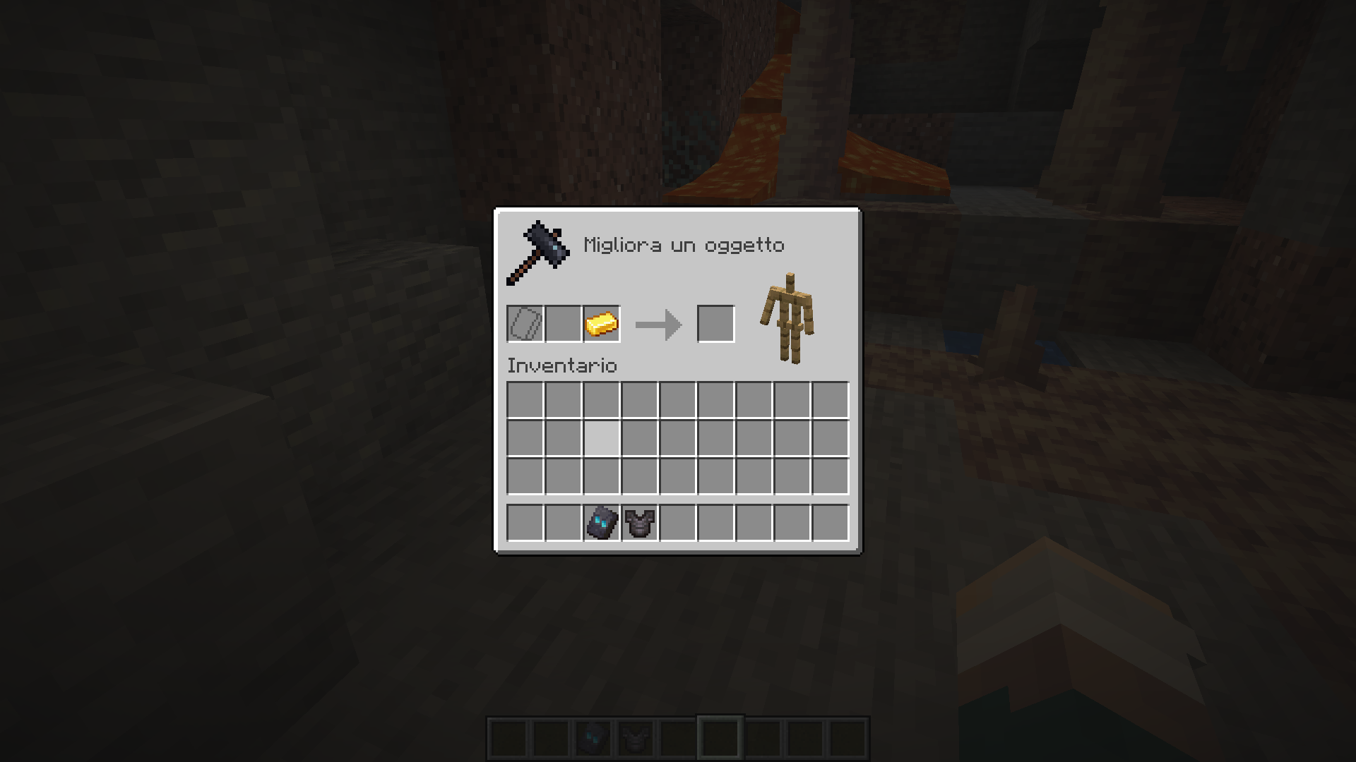 Slot icons only show when I put as first the smithing template (image 1). When I put the armor piece first, it shows only the smithing template icon but not the material one (image 2); I found the same behavior when I put the material first (image 3).
