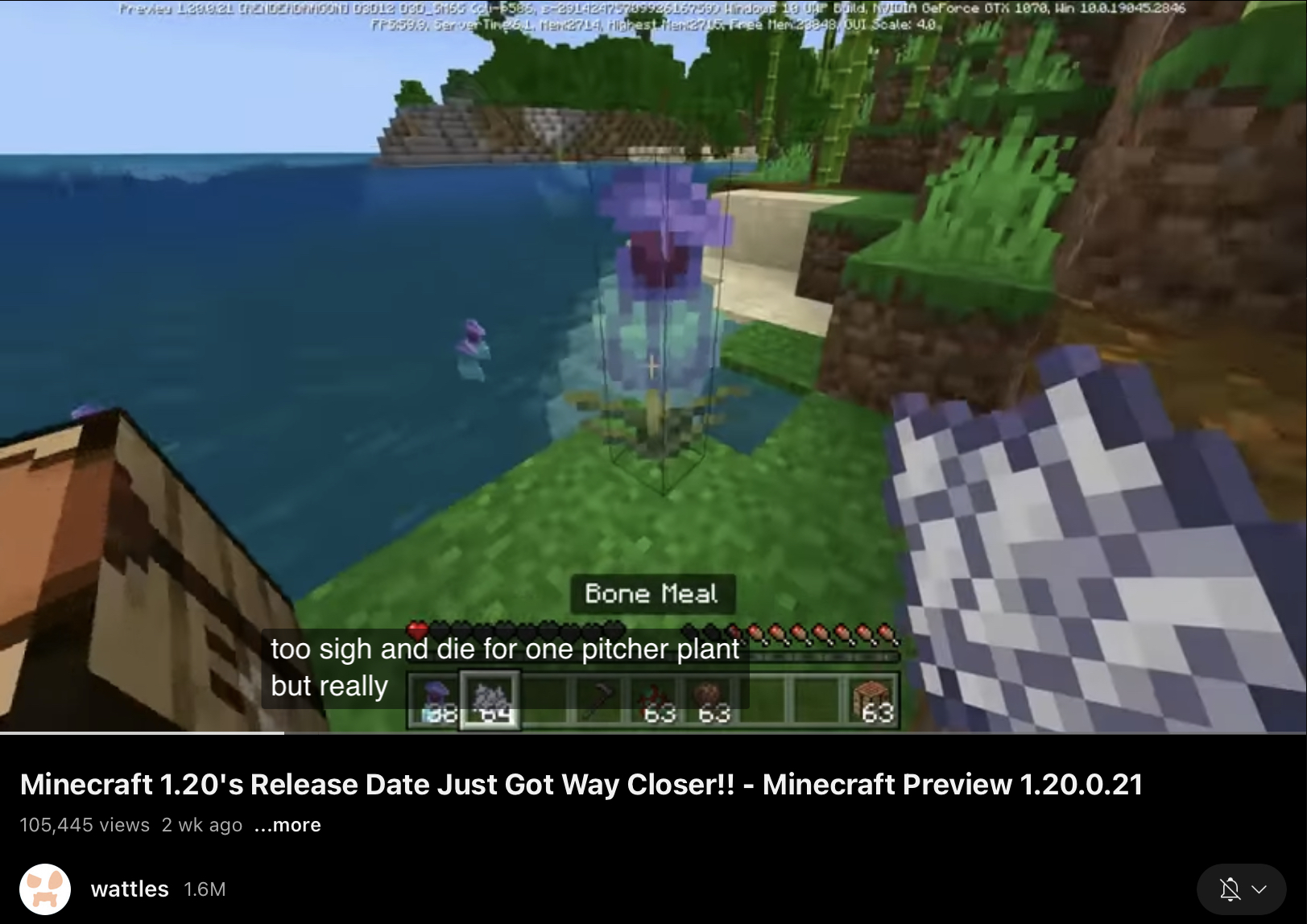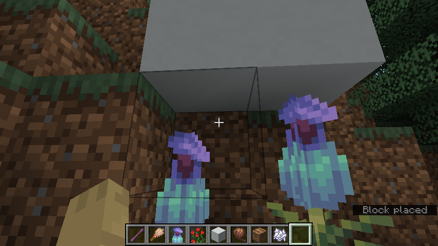 In Java Edition, the hitbox for pitcher plants covers a full cube. However, in Bedrock Edition, the hitbox is more appropriate for the block's actual size, allowing for the block below it to be targeted.