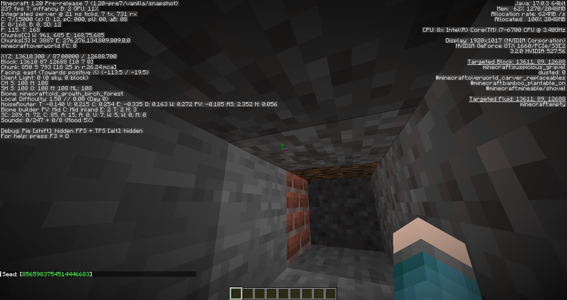 Coordinates: /execute in minecraft:overworld run tp @s 13610.58 87.00 12688.70 -475.34 -21.90Steps to Reproduce: