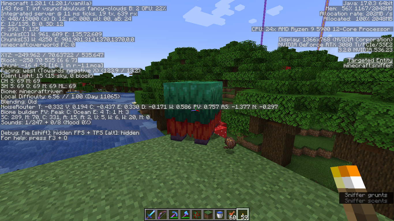 Sniffers aren't able to sniff up pitcher pods if they are in a river biome and above grass blocksin 1.20.1