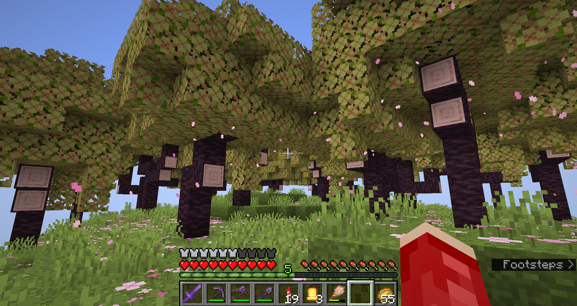 The cherry blossom leaves are not pink like they should be, they are a sort of greenish colour. I don't have a resourcepack/shaders and i've not changed any settings.