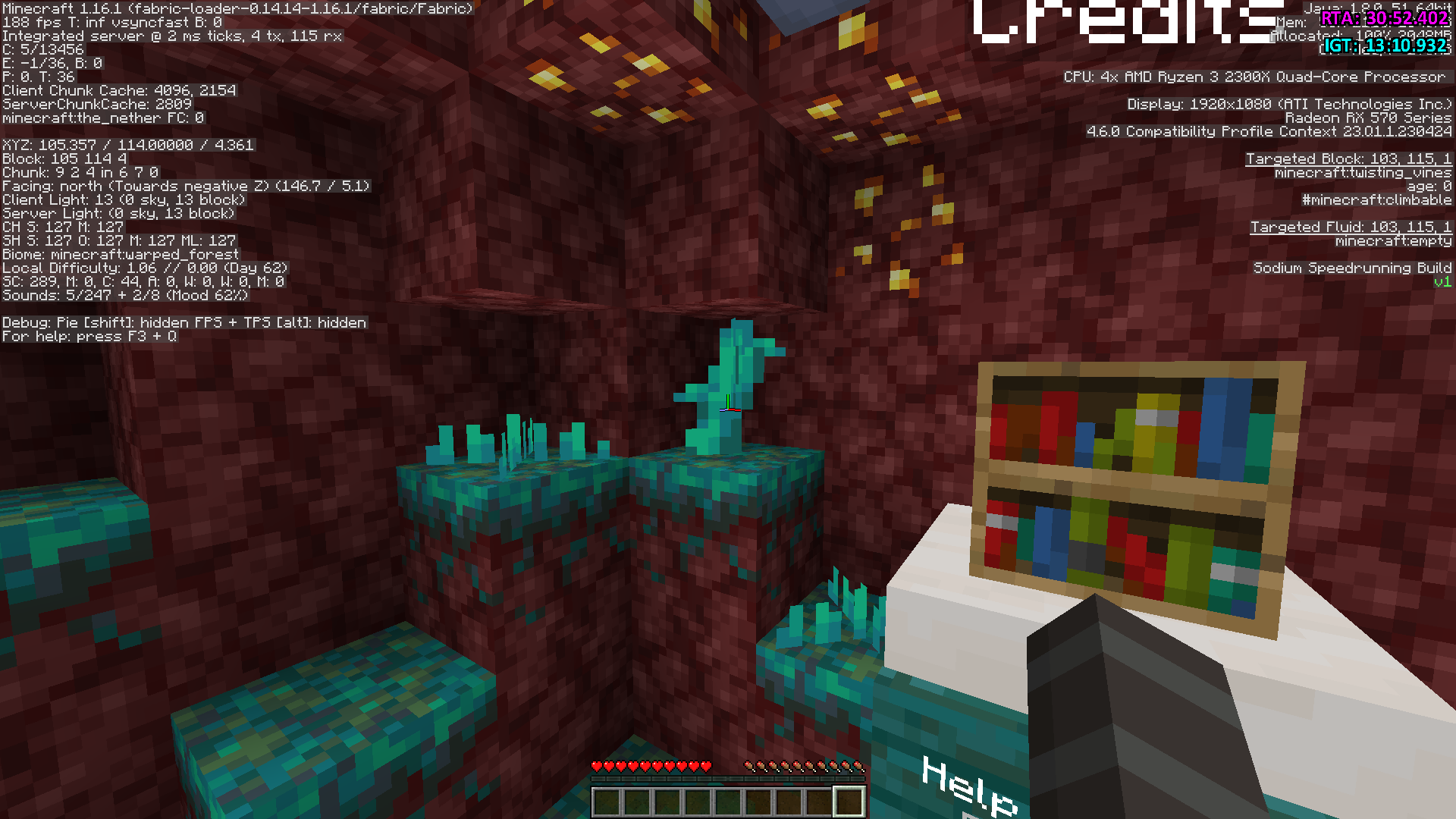 Im on 1.16.1 with these mods: atum, dynamic menu, lazydfu, lazystronghold, lithium, sodium speedrun, spedrunigt, standard settings, starlight.
