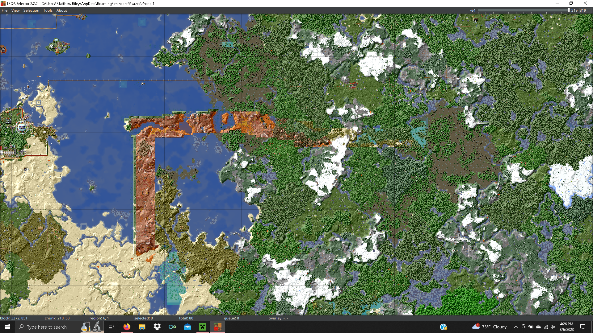 Just went to play my world, and had a HUGE UGLY SCAR generate across my world in the form of a large L-shaped mess of chunks resetting to a mesa biome. These chunks should be a nice ocean biome, alongside some swamp, forest, and plains biomes, but now the chunks are all messed up. Here, I've included some pictures from MCASelector showing what is happening. The first picture shows what these chunks should be, and the second shows what is happening to these chunks even after a put them back to normal using MCASelector. Get this fixed ASAP, by the next snapshot, please. I am really not happy. Thank you.