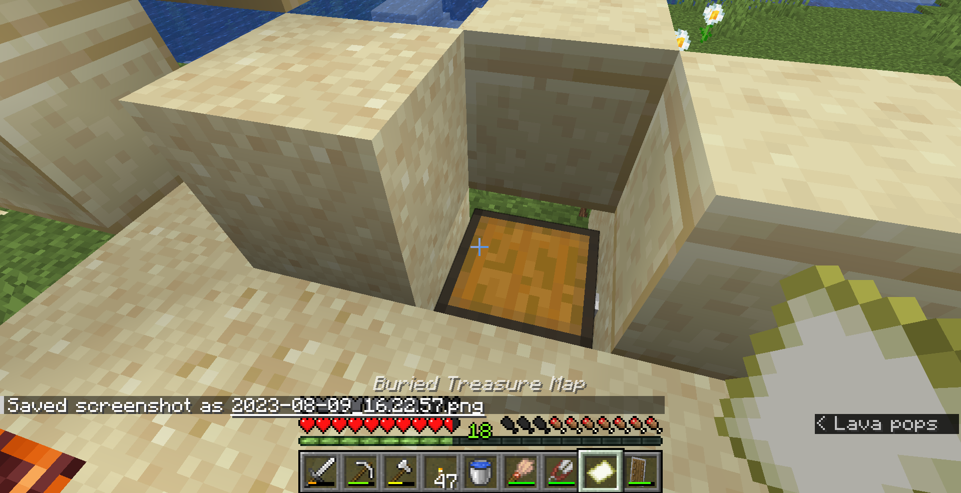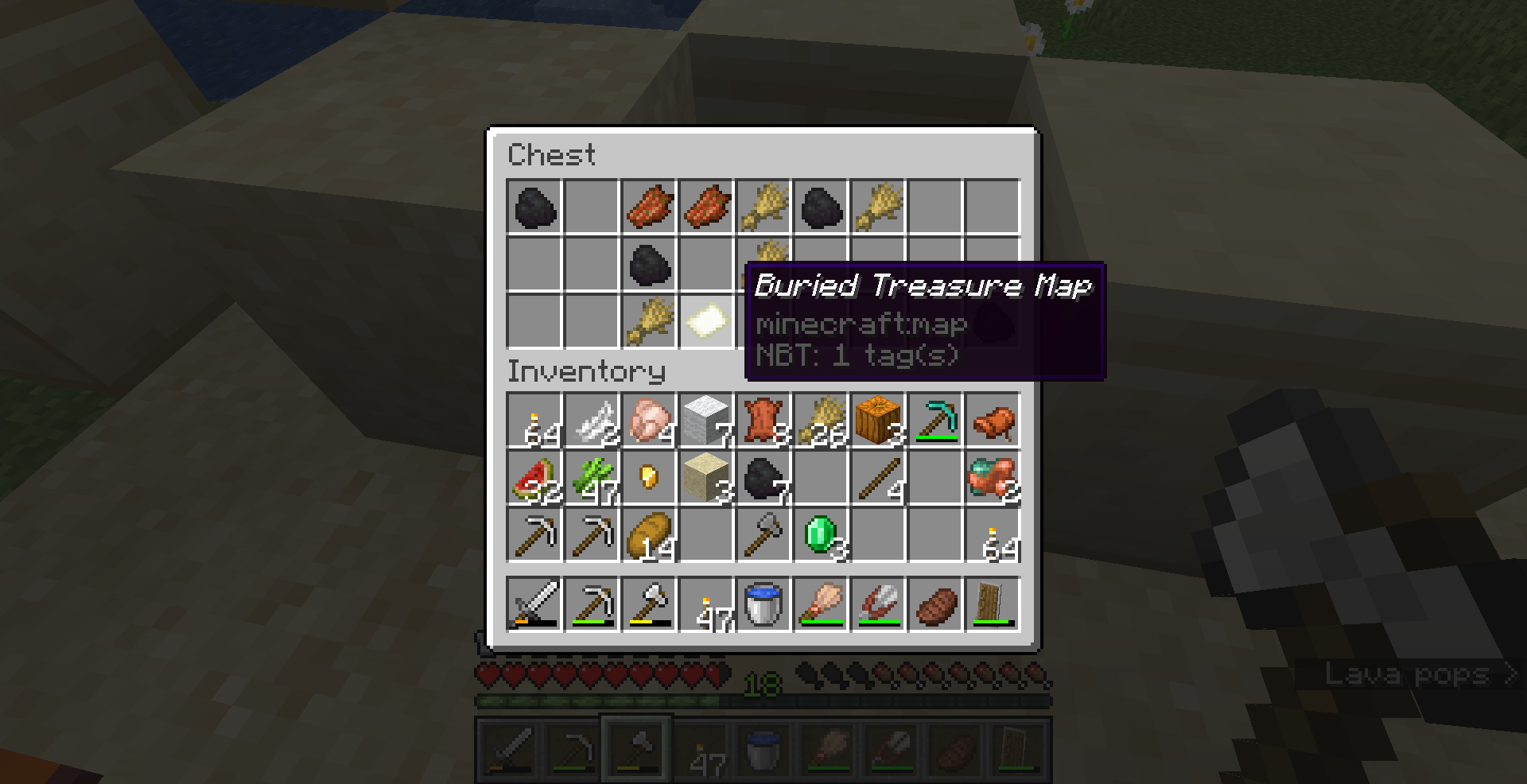 I have found two buried treasure maps so far in my current world. Both of them have behaved as if they were standard blank maps except for their names – when held in a hand they do not display terrain, and when right-clicked, they populate with a basic map of the area the player is in.