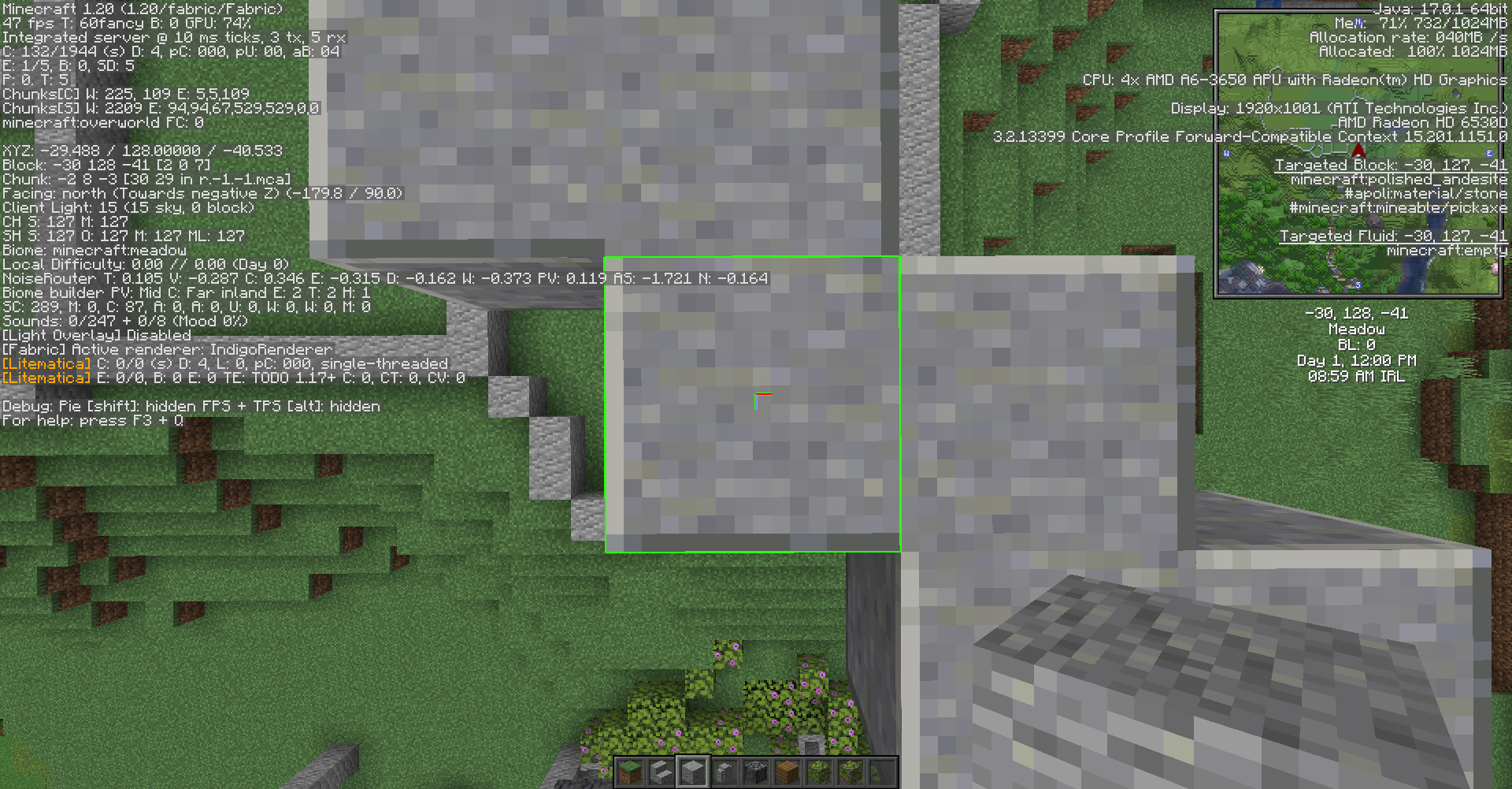 Polished Andesite screenshot is Version 1.20 - Modded - Off by 1 block