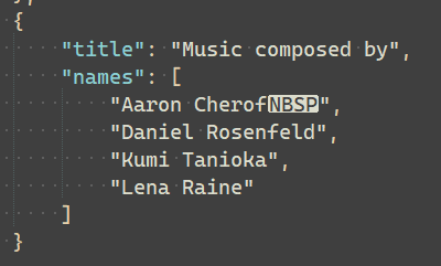 Aaron Cherof is listed with an erroneous trailing no-break space in the credits. While this is invisible in the game, anyone trying to machine-parse credits.json will run into this problem.